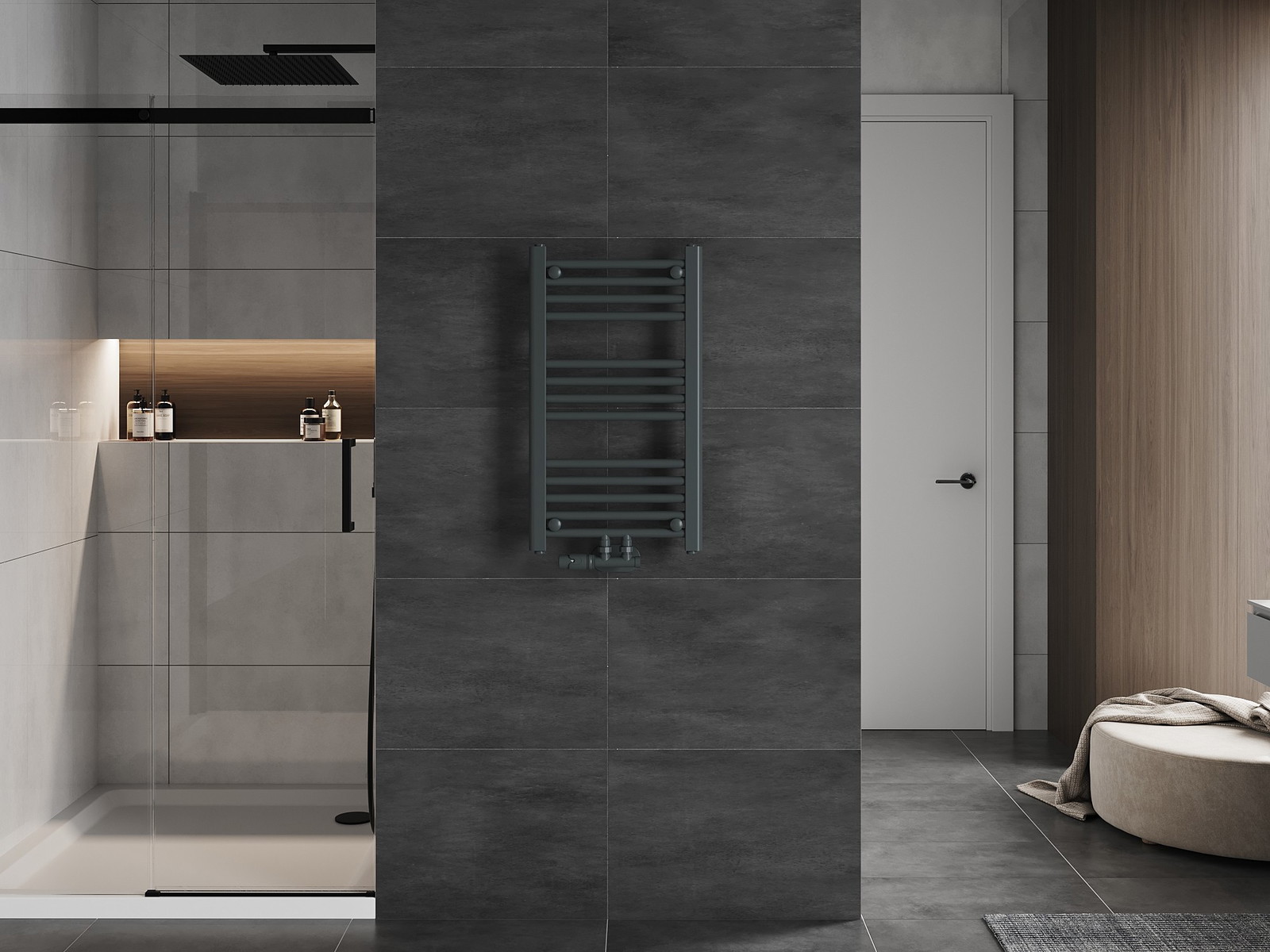 Mexen Mars ist ein moderner Badezimmerheizkörper mit den Maßen 700 x 400 mm, der eine Heizleistung von 238 W bietet und damit die ideale Wahl für kleine und mittelgroße Badezimmer ist. Die aus strapazierfähigem Stahl gefertigte Ausführung ist durch eine hochwertige Lackierung vor Korrosion geschützt. Der Heizkörper ist in elegantem Anthrazit RAL 7016 erhältlich. Die Montage ist flexibel, mit verschiedenen Anschlussoptionen: unten und mittig sowie die Möglichkeit, eine Heizpatrone zu installieren. Das Set enthält die notwendigen Teile für die Montage, was die Installation erleichtert.
