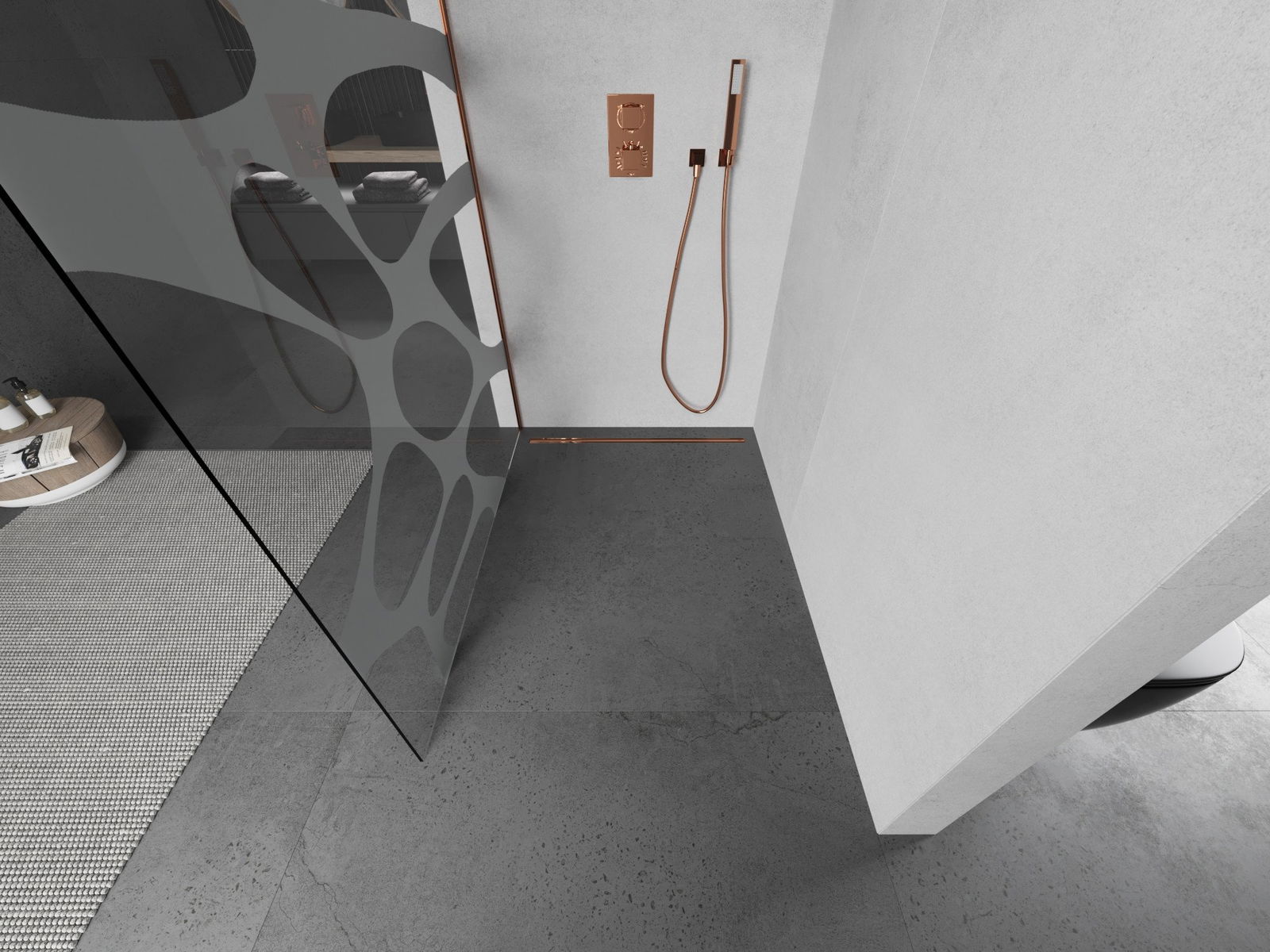 Mexen Kioto Duschwand Walk-in 130 x 200 cm, weiße Welle 8 mm, Roségold - 800-130-101-60-97