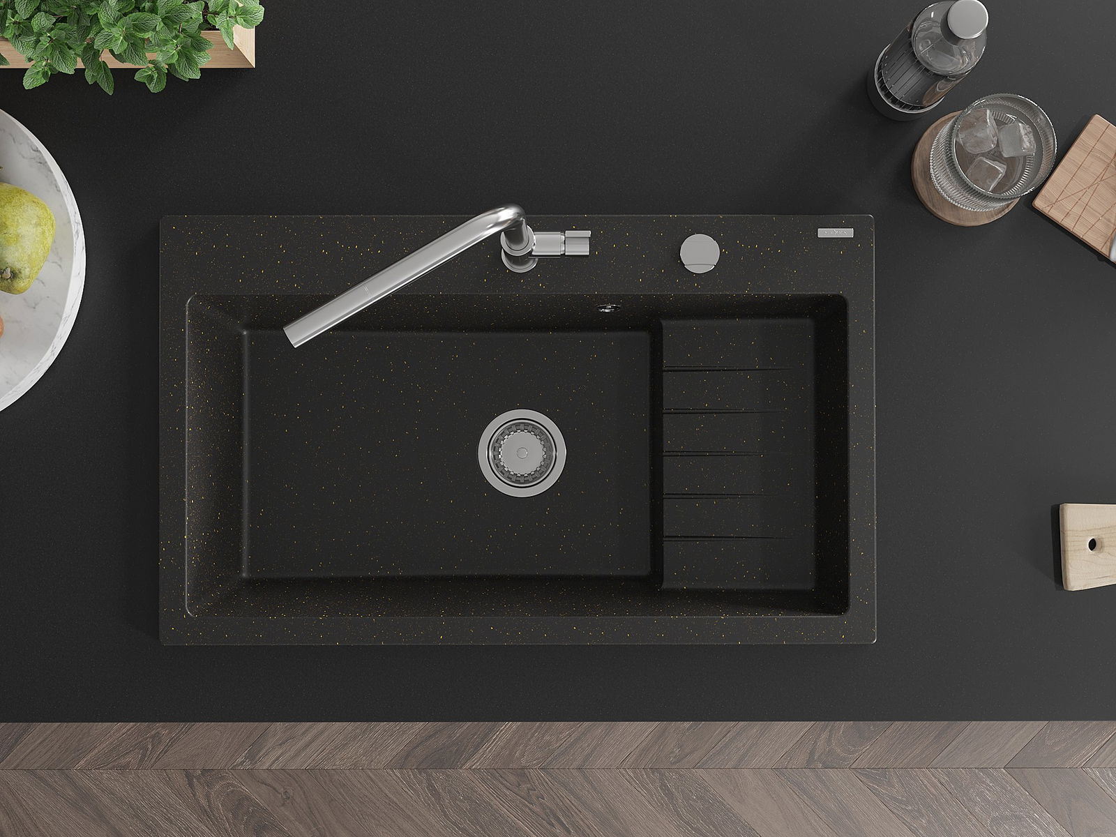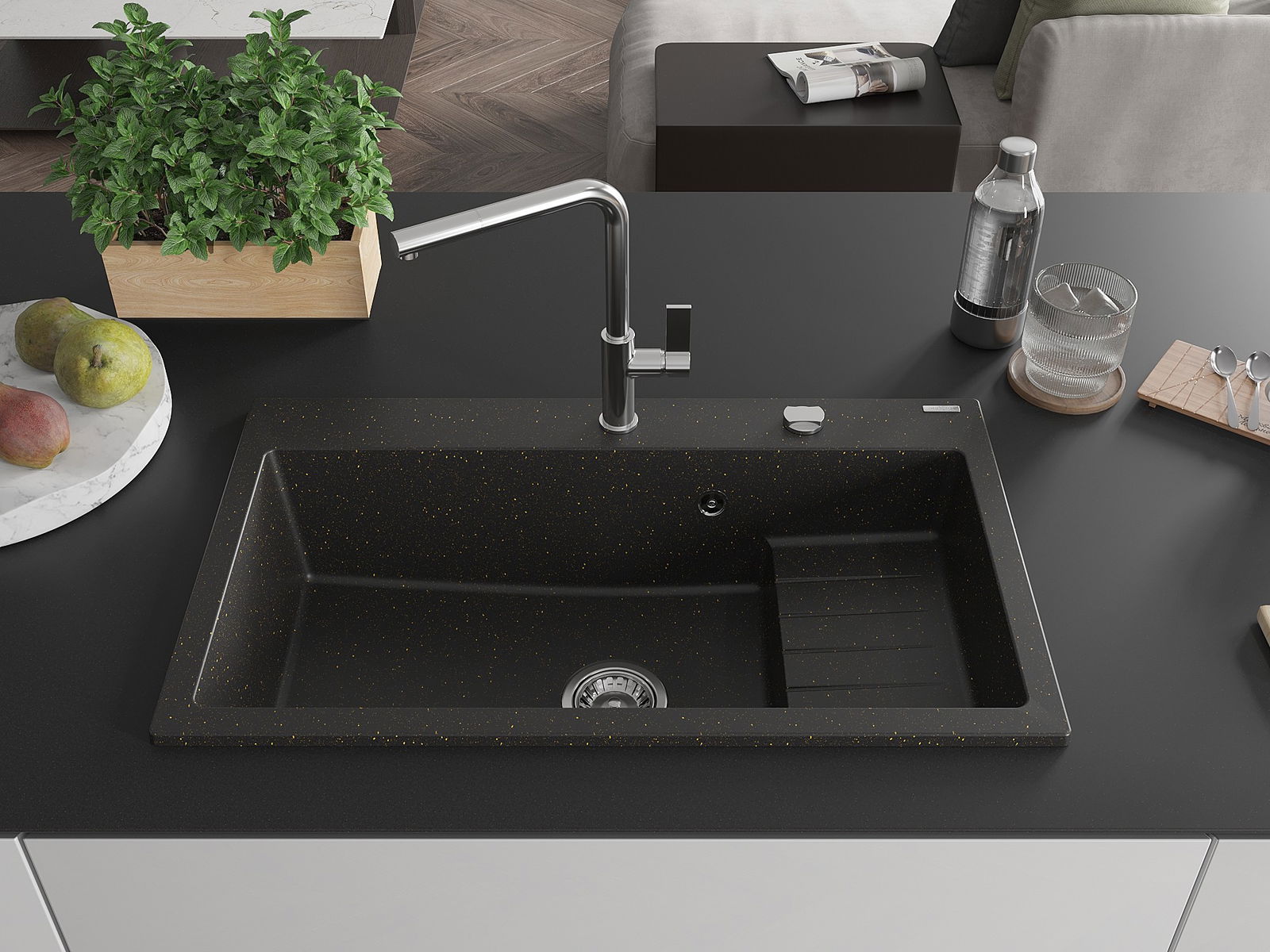 Das Spülbecken wurde aus hochwertigem Granit gefertigt. Es ist eine elegante und vor allem praktische Ergänzung für jede Küche, unabhängig von ihrem Stil. Die hohe Qualität und Haltbarkeit von Granit bieten eine jahrelange Nutzung.