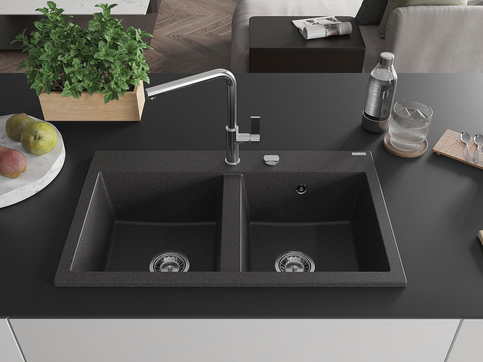 Das Spülbecken wurde aus hochwertigem Granit gefertigt. Es ist eine elegante und vor allem praktische Ergänzung für jede Küche, unabhängig von ihrem Stil. Die hohe Qualität und Haltbarkeit von Granit bieten eine jahrelange Nutzung.