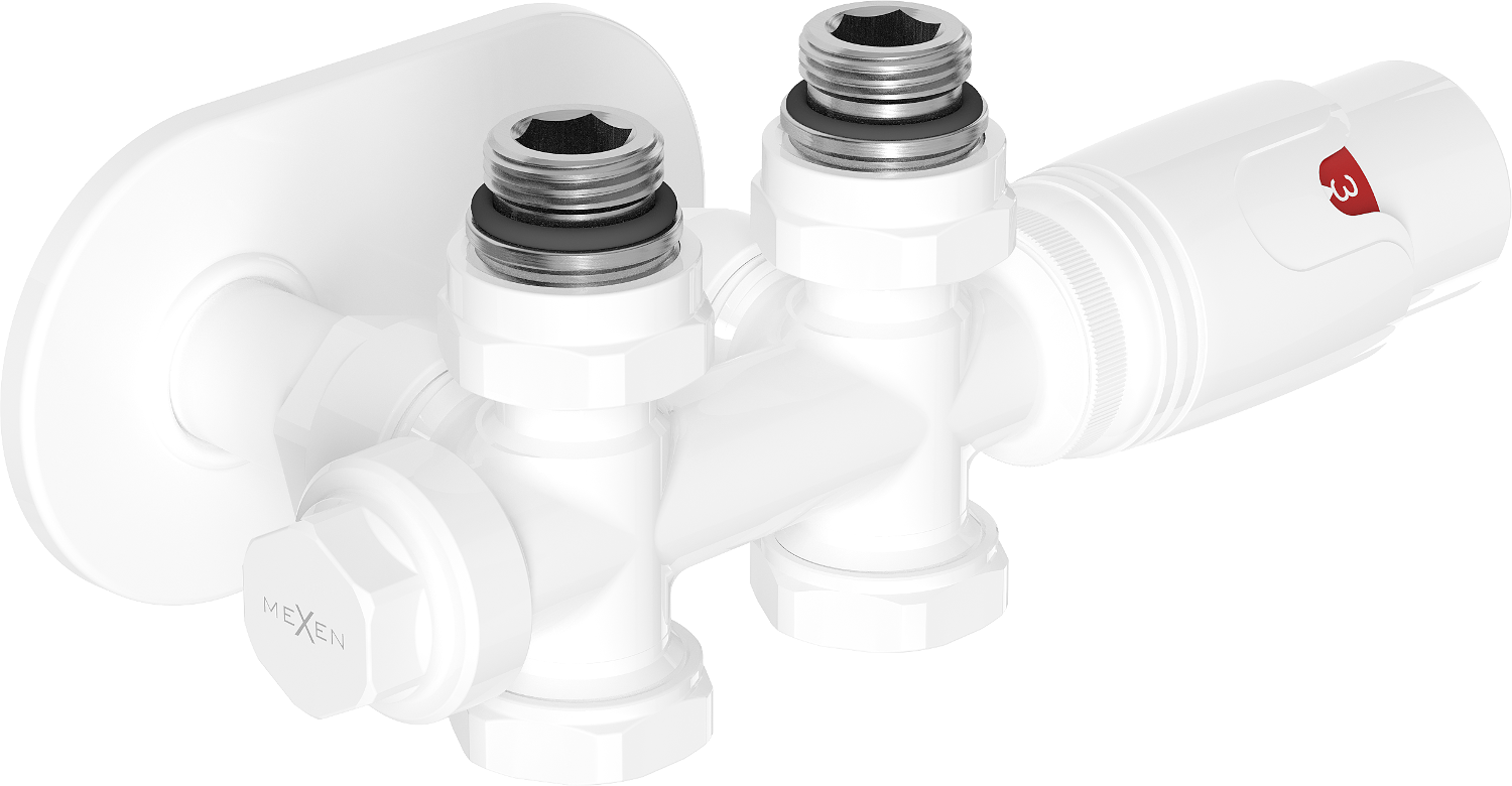 Universelles Versorgungs- und Absperrventil für Eck- und Geradanschlüsse, unabhängig davon, ob der Anschluss an der Wand oder am Boden erfolgt