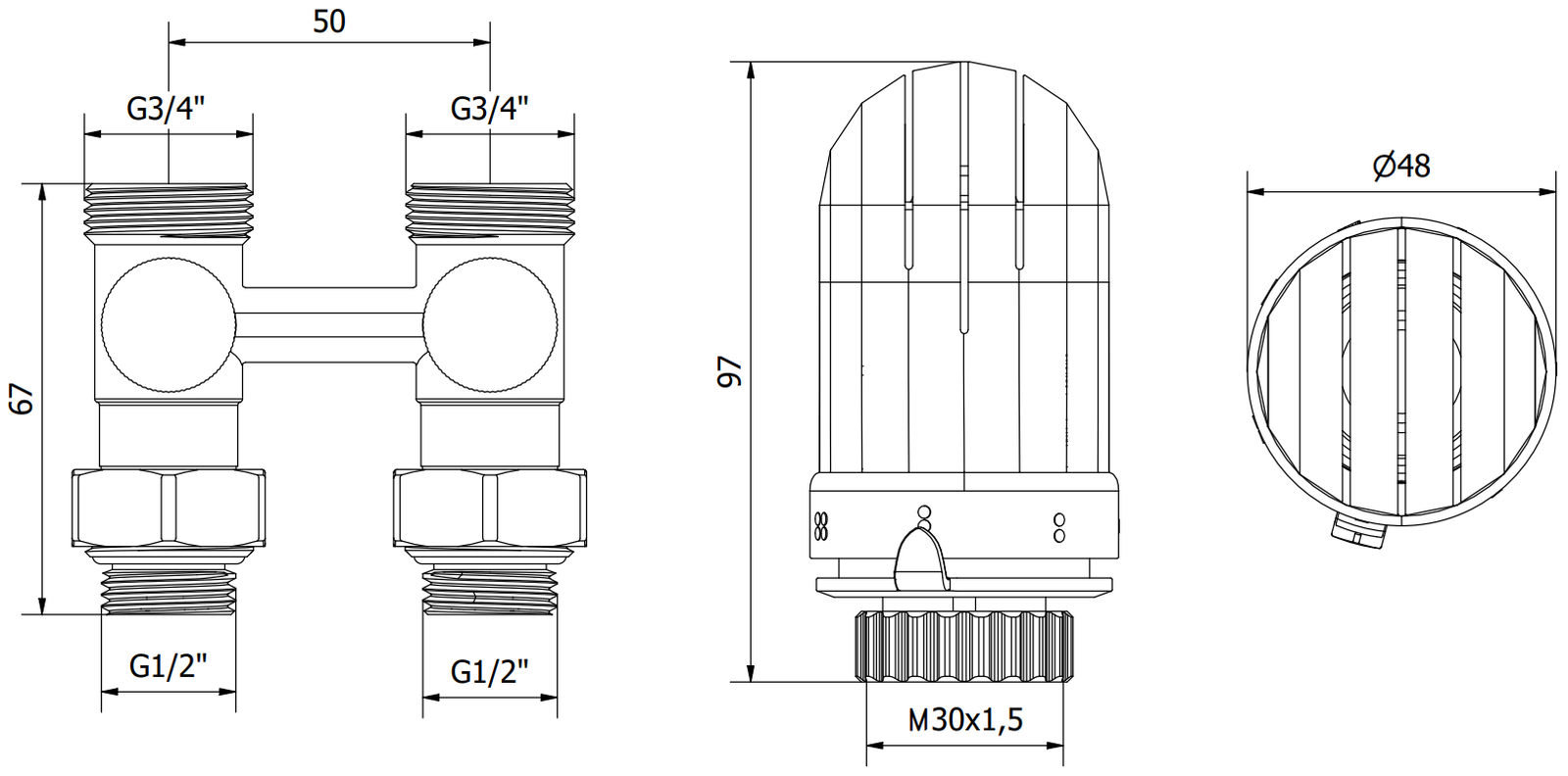 Anschlussdurchmesser des Ventils: G 1/2" und G 3/4"