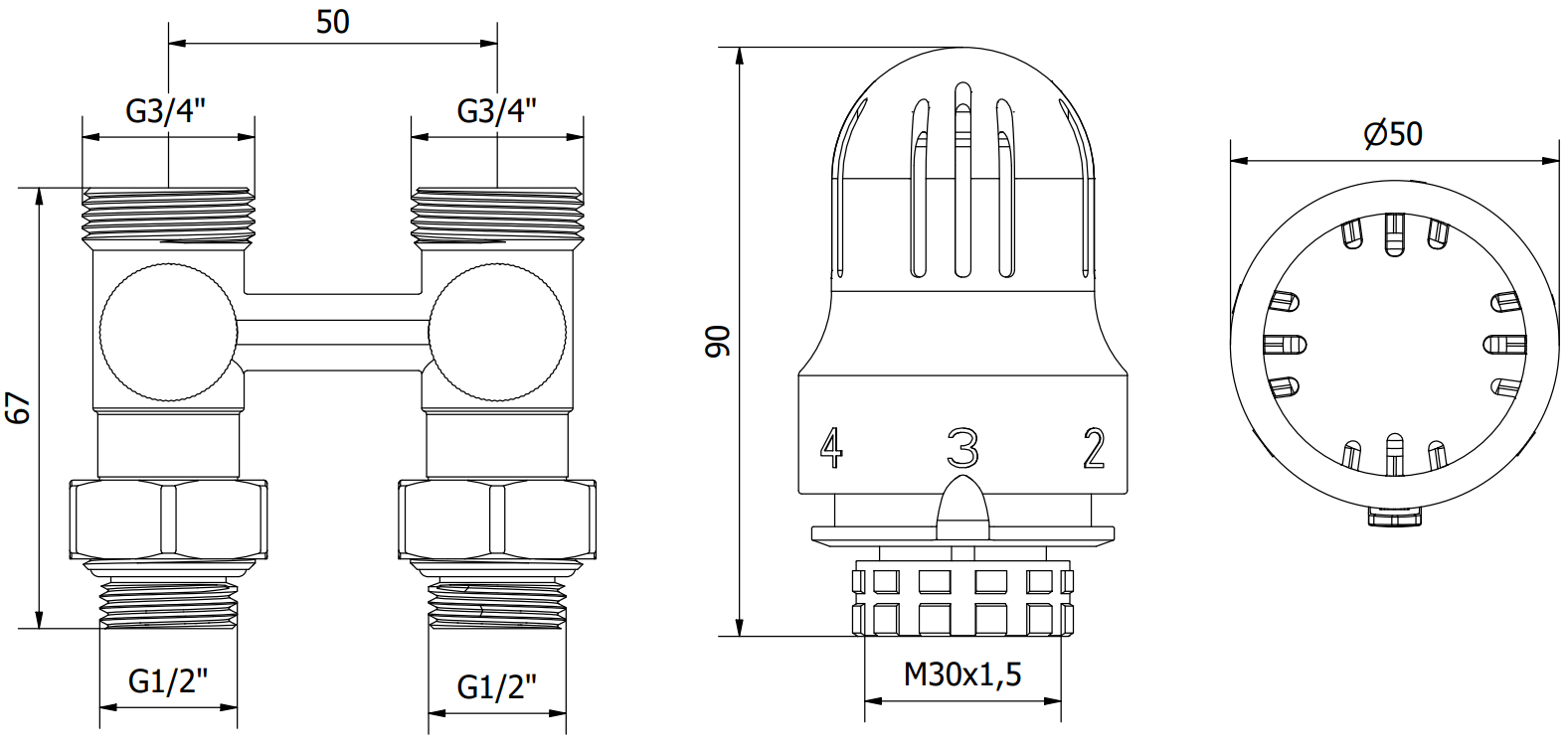 Ventilanschlussdurchmesser: G 1/2" und G 3/4"