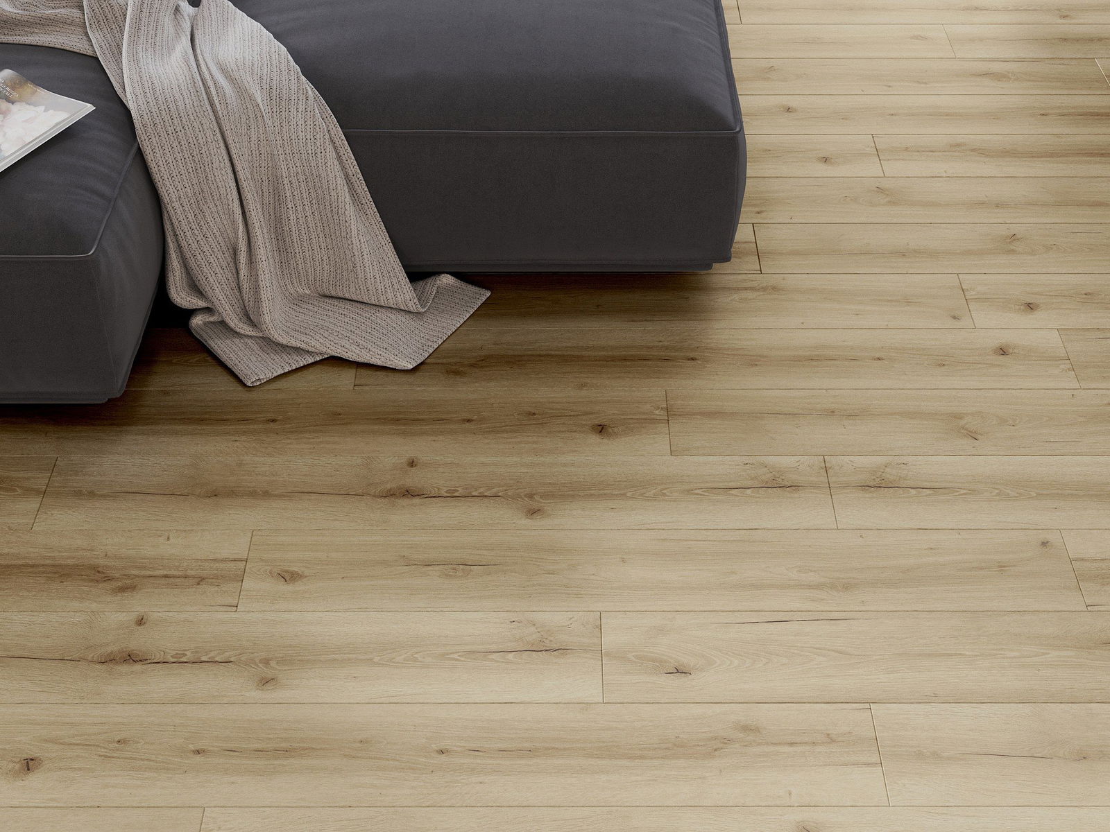 Die Paneele haben eine 4-seitige Fuge - jede Seite wurde so gefräst, dass beim Verlegen eine V-förmige Fuge zwischen den Paneelen entsteht. Dadurch wird der Boden deutlicher differenziert, was dem Boden Tiefe und Struktur verleiht.