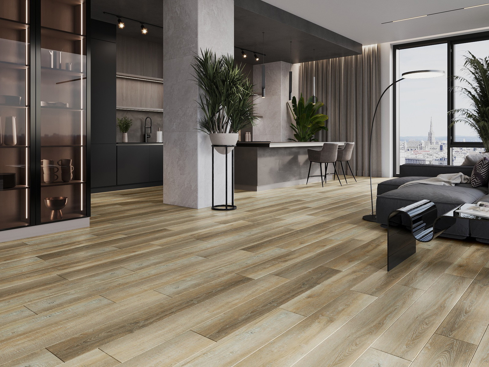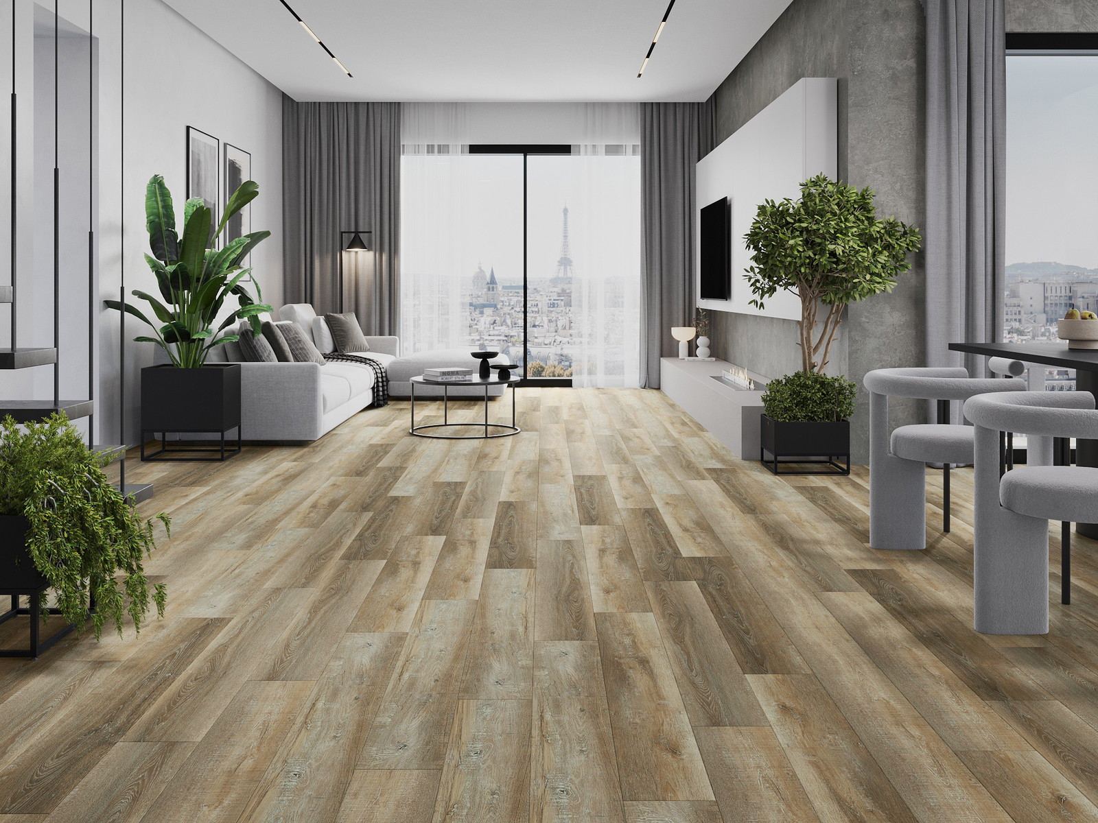 Die Paneele haben eine 4-seitige Fuge - jede Seite wurde so gefräst, dass beim Verlegen eine Verbindung in V-Form entsteht. Dieses Design verleiht dem Boden eine markantere Struktur, was ihm Tiefe und einen ästhetischen Charakter verleiht. Dieser Effekt wird besonders in modernen Arrangements geschätzt, wo Details das außergewöhnliche Erscheinungsbild des Innenraums betonen.