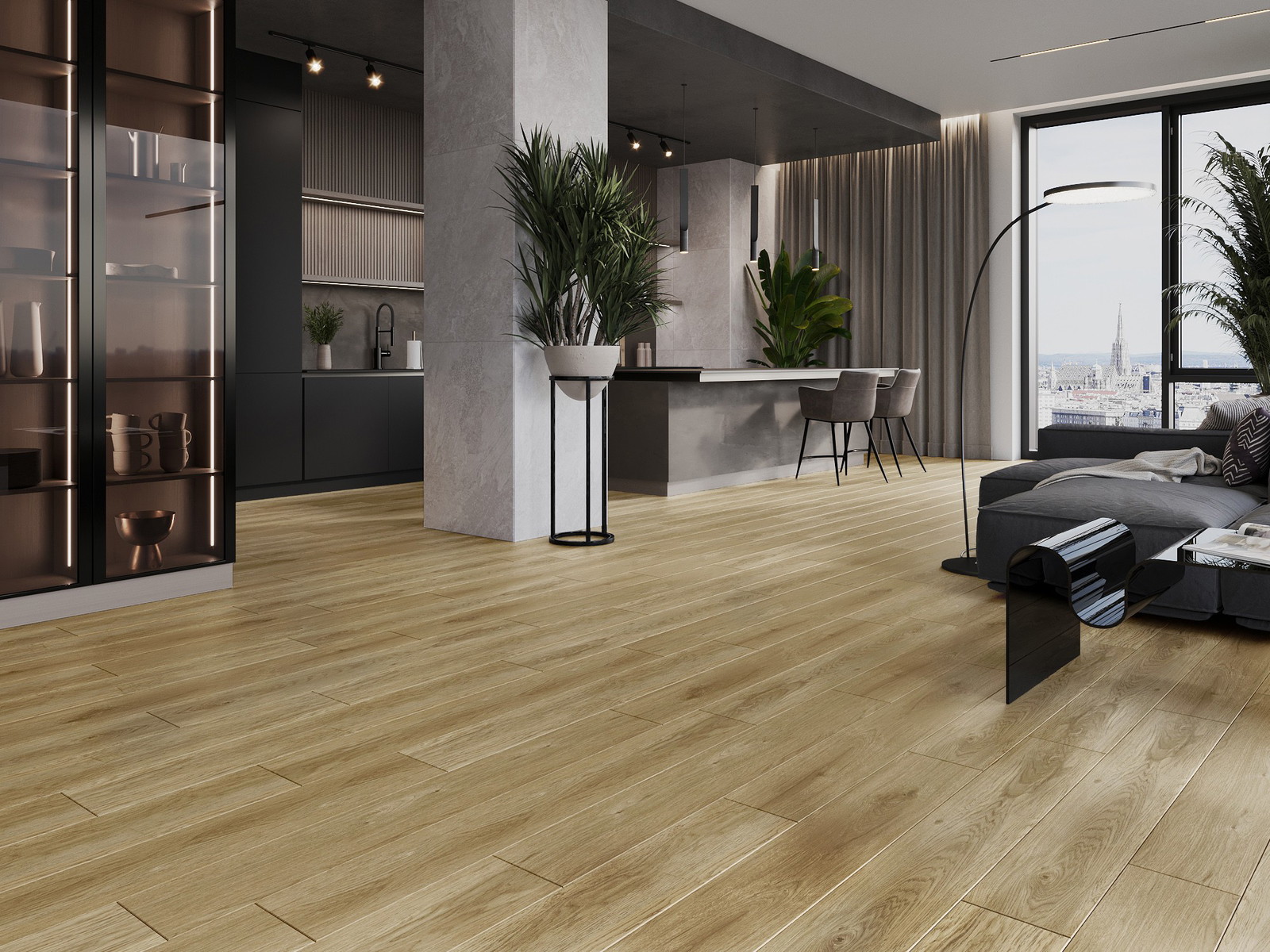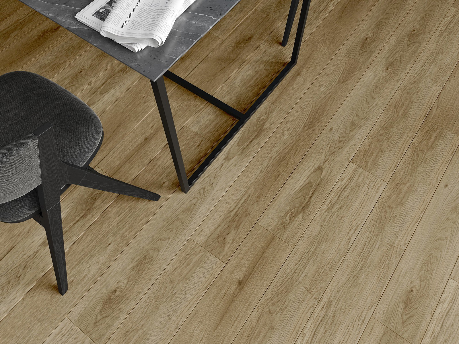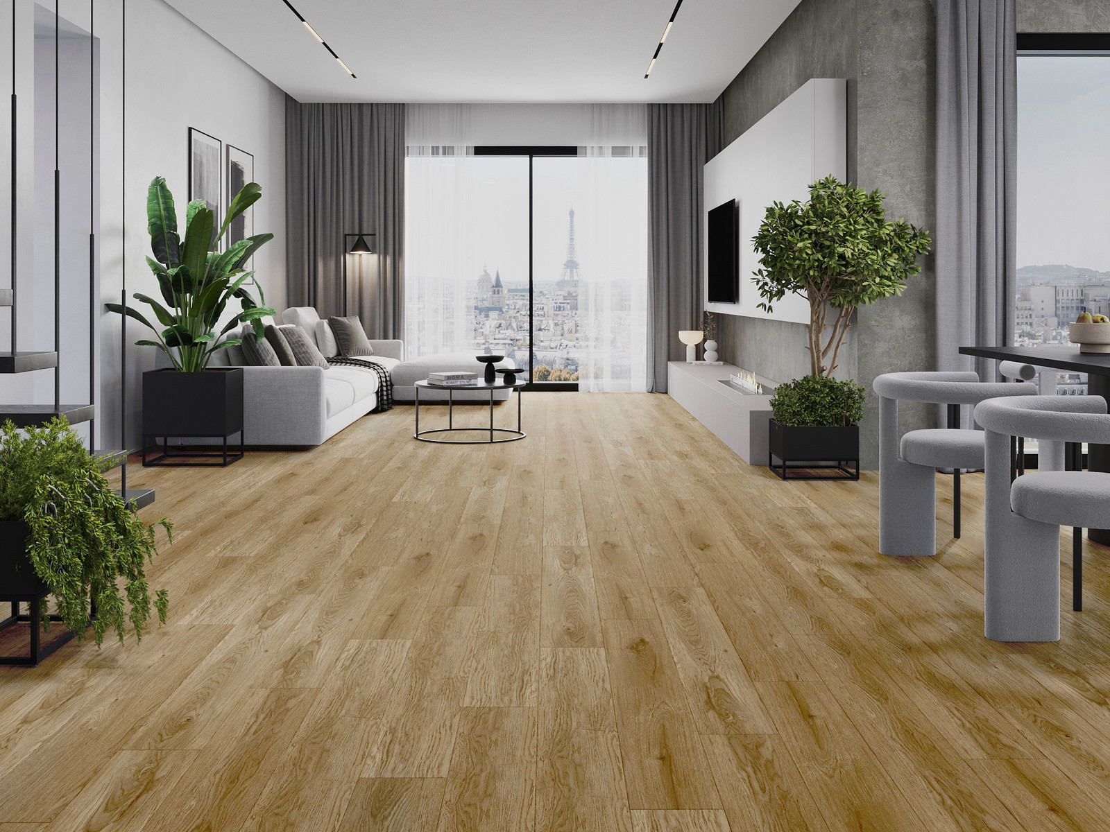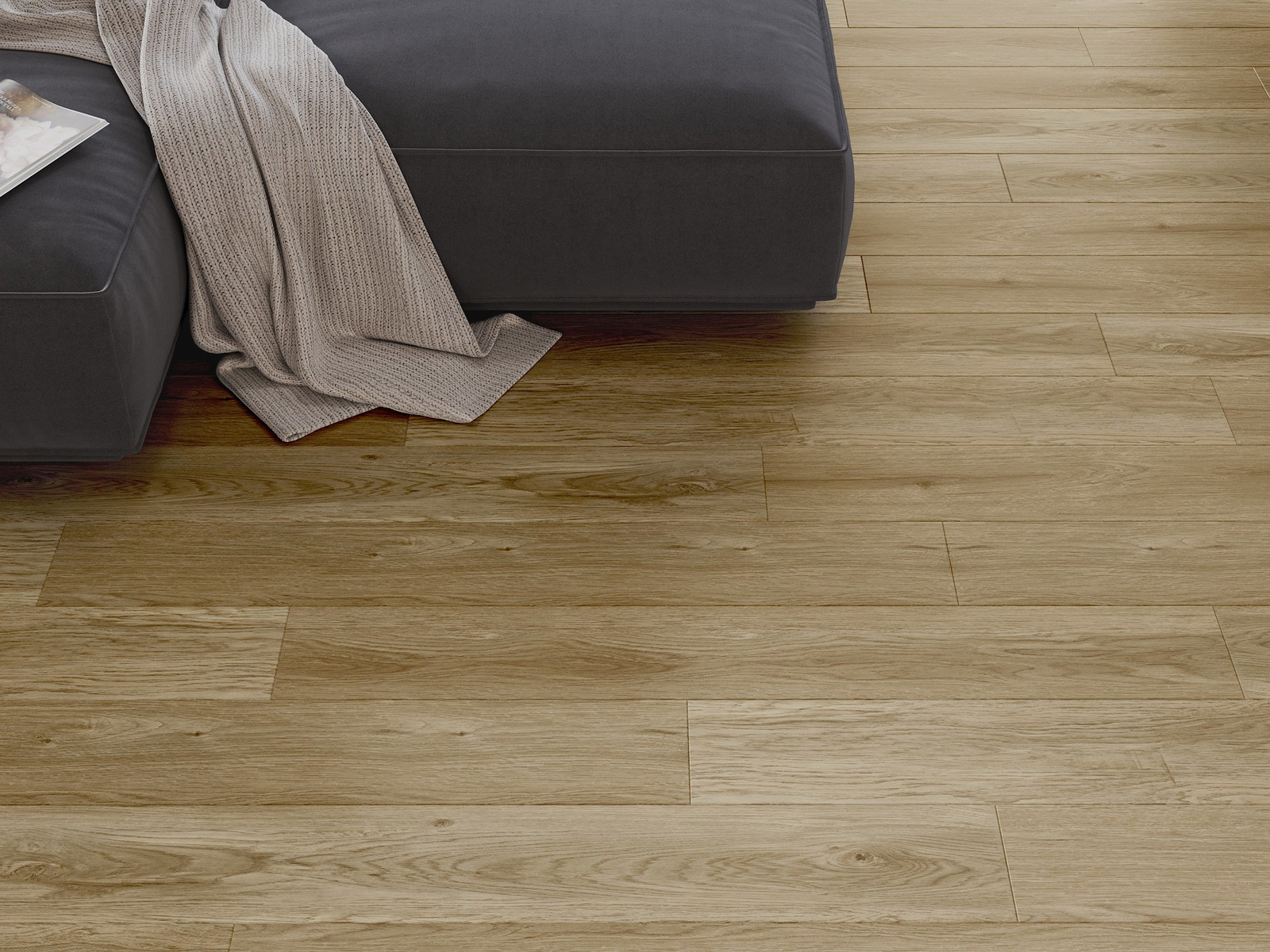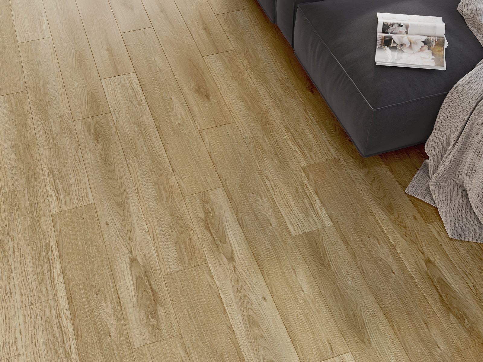 Die Paneele haben eine 4-seitige Fuge - jede Seite wurde so gefräst, dass beim Verlegen eine Verbindung in V-Form entsteht. Dieses Design verleiht dem Boden eine markantere Struktur, was ihm Tiefe und einen ästhetischen Charakter verleiht. Dieser Effekt wird besonders in modernen Arrangements geschätzt, wo Details das außergewöhnliche Erscheinungsbild des Innenraums betonen.