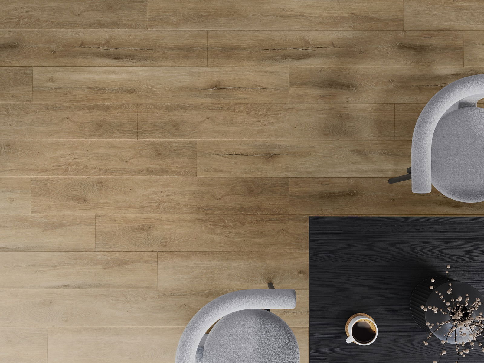 Die Paneele haben eine 4-seitige Fuge - jede Seite wurde so gefräst, dass beim Verlegen eine Verbindung in V-Form entsteht. Dieses Design verleiht dem Boden eine markantere Struktur, was ihm Tiefe und einen ästhetischen Charakter verleiht. Dieser Effekt wird besonders in modernen Arrangements geschätzt, wo Details das außergewöhnliche Erscheinungsbild des Innenraums betonen.