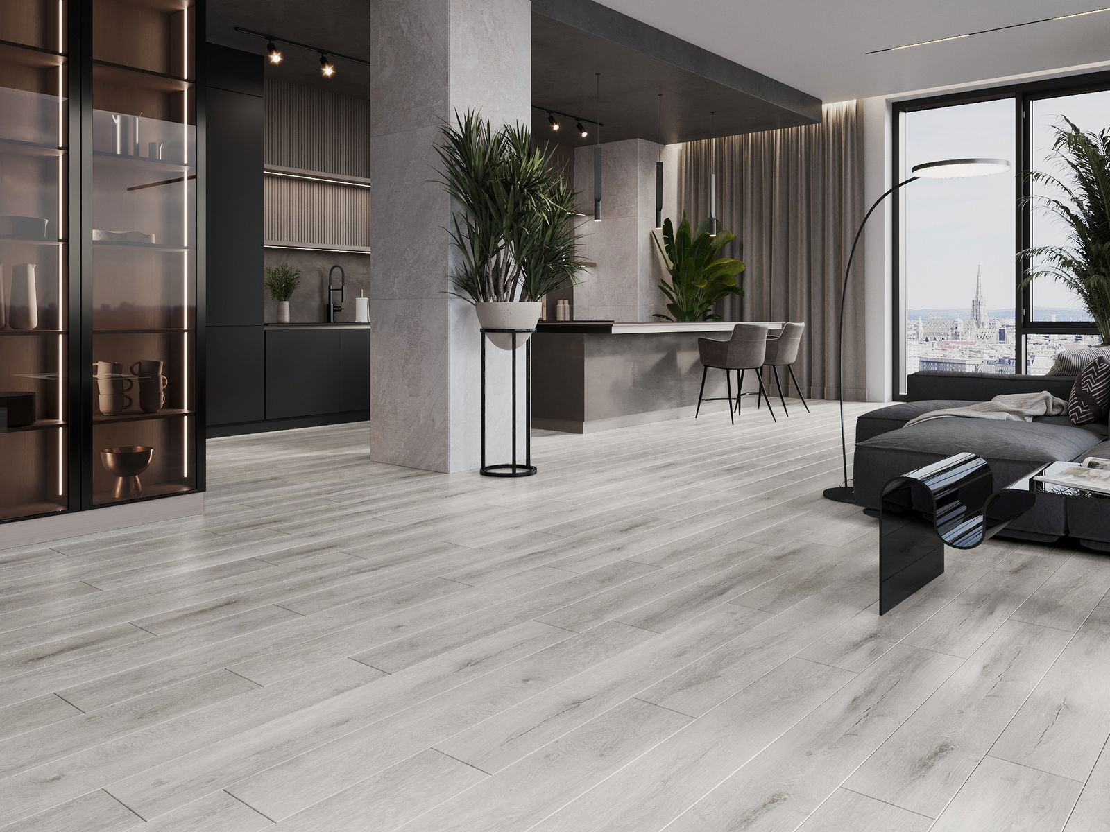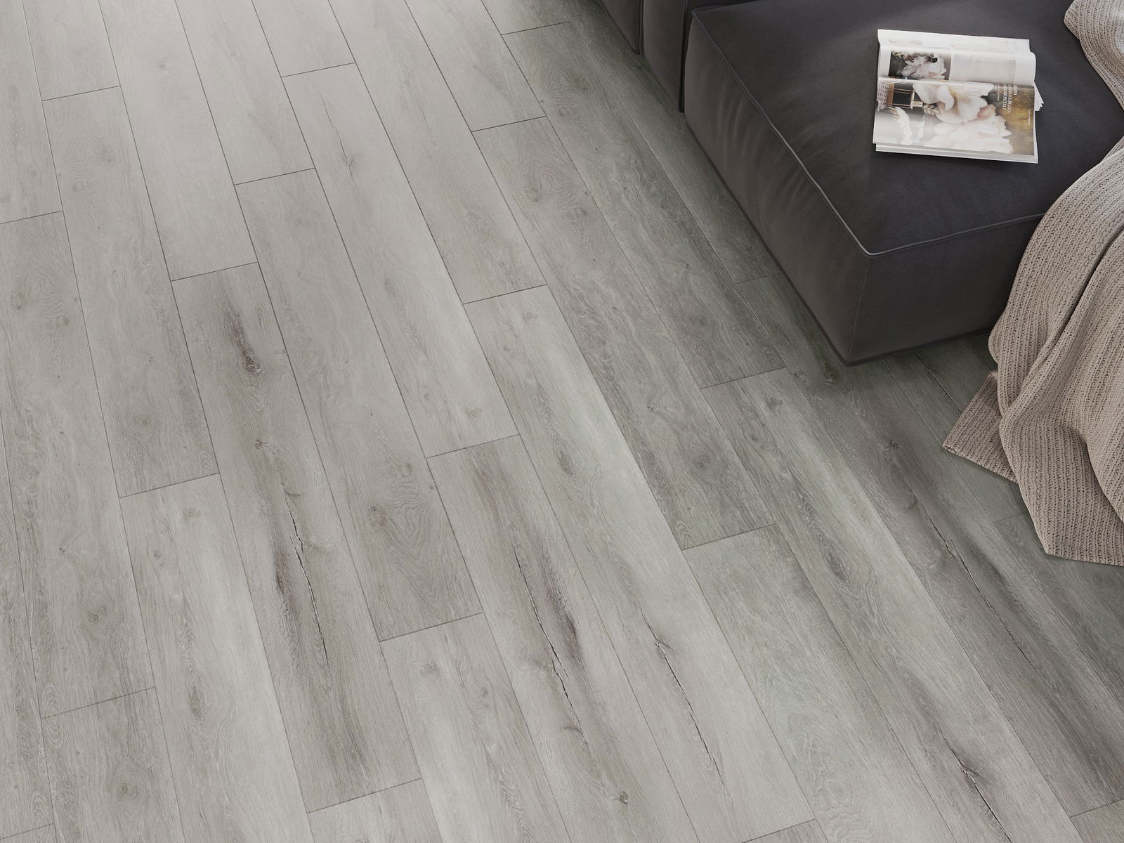 Die Paneele haben eine 4-seitige Fuge - jede Seite wurde so gefräst, dass beim Verlegen eine Verbindung in V-Form entsteht. Dieses Design verleiht dem Boden eine markantere Struktur, was ihm Tiefe und einen ästhetischen Charakter verleiht. Dieser Effekt wird besonders in modernen Arrangements geschätzt, wo Details das außergewöhnliche Erscheinungsbild des Innenraums betonen.