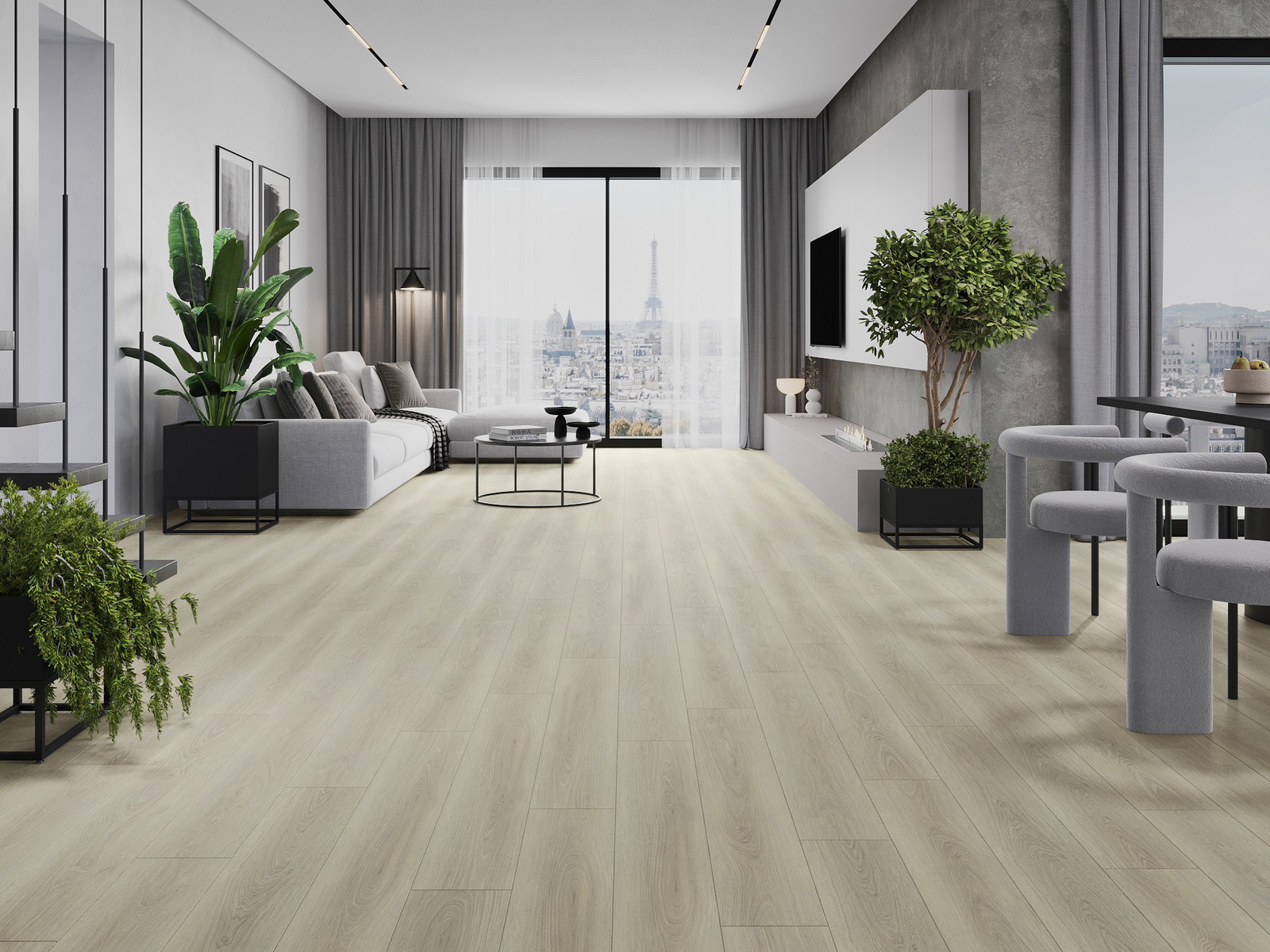 Die Paneele haben eine 4-seitige Fuge - jede Seite wurde so gefräst, dass beim Verlegen eine Verbindung in V-Form entsteht. Dieses Design verleiht dem Boden eine markantere Struktur, was ihm Tiefe und einen ästhetischen Charakter verleiht. Dieser Effekt wird besonders in modernen Arrangements geschätzt, wo Details das außergewöhnliche Erscheinungsbild des Innenraums betonen.