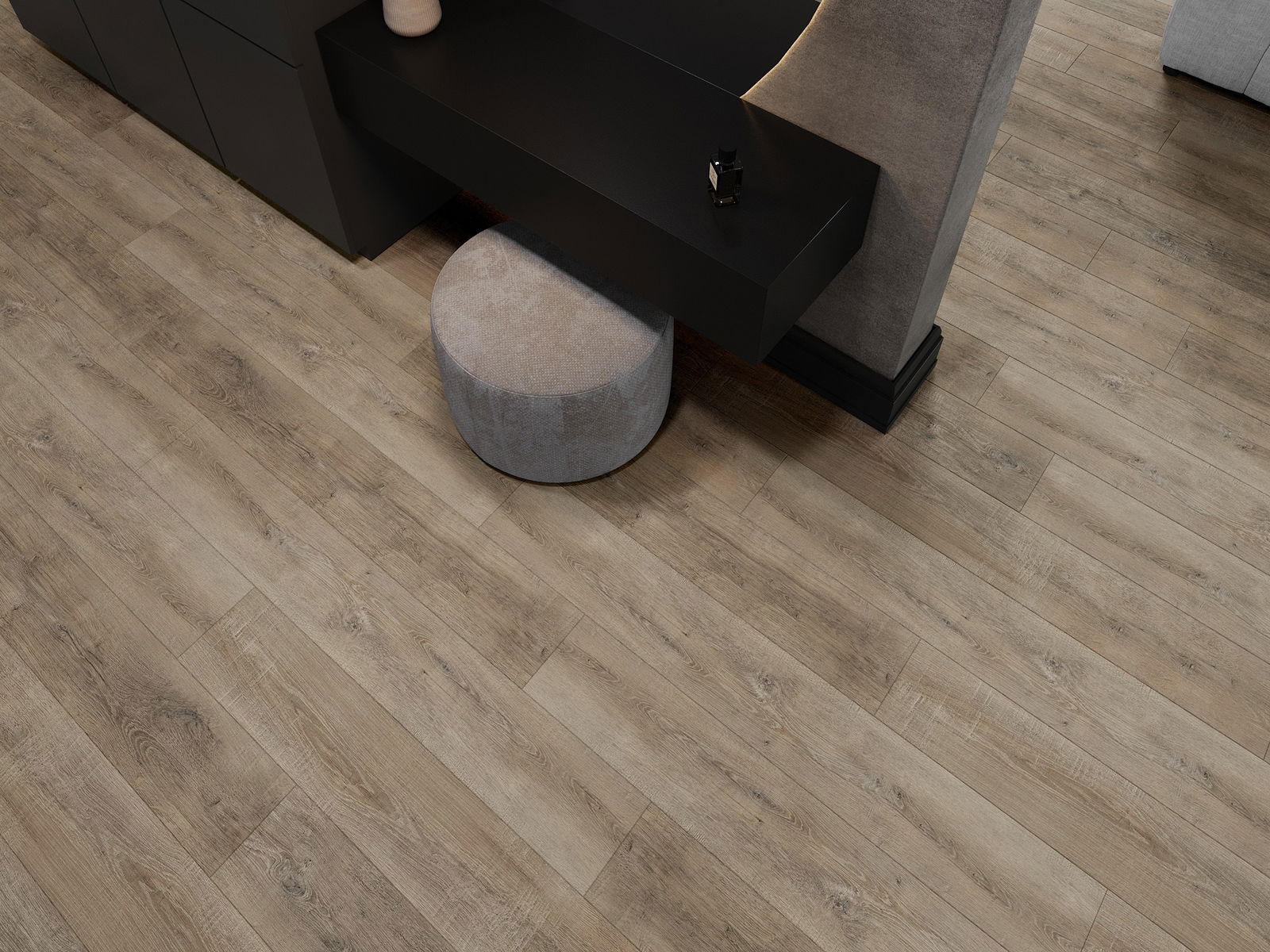 Die Paneele haben eine 4-seitige Fuge - jede Seite wurde so gefräst, dass beim Verlegen eine V-förmige Fuge zwischen den Paneelen entsteht. Dadurch wird der Boden deutlicher differenziert, was dem Boden Tiefe und Struktur verleiht.