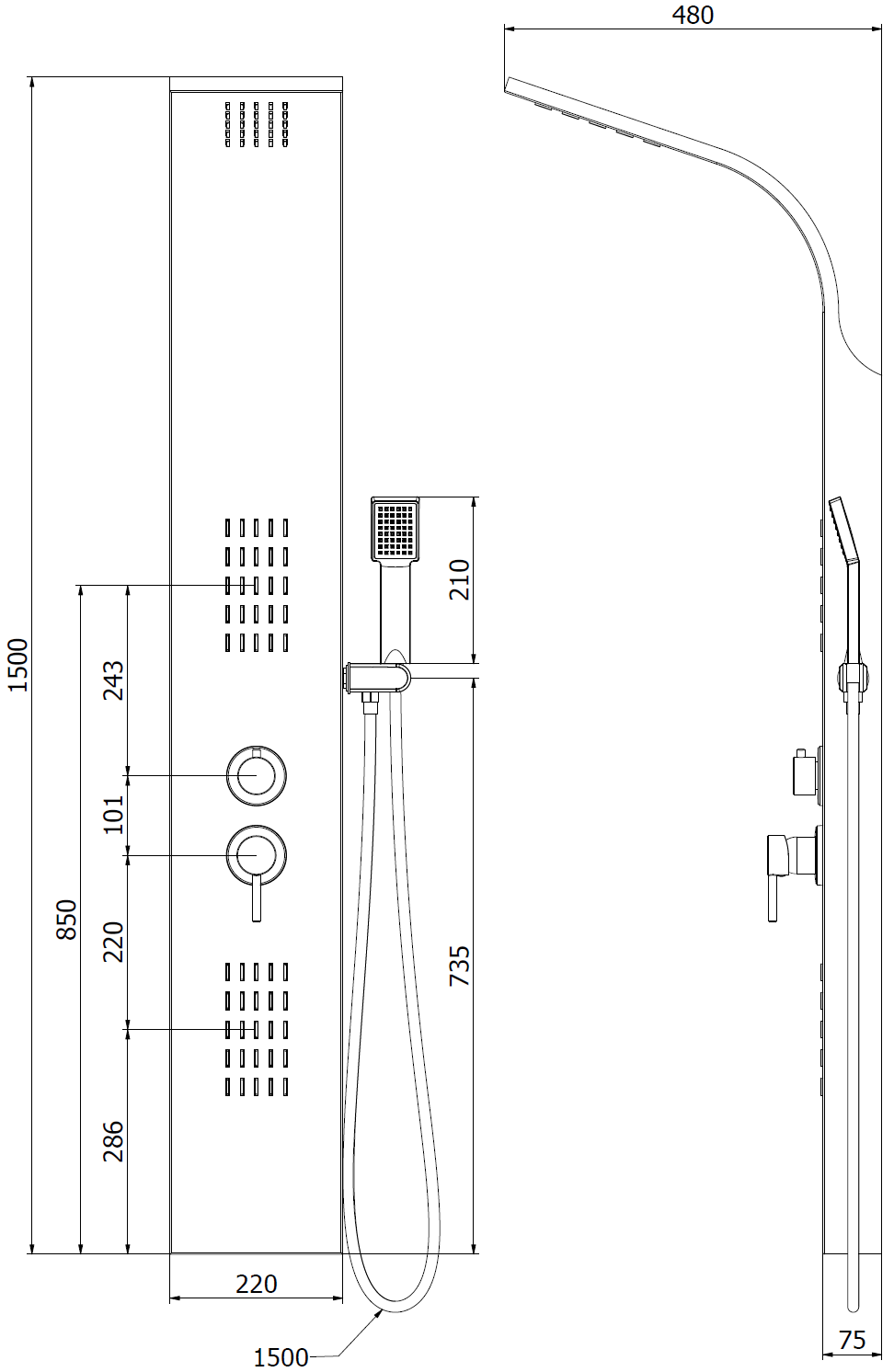 Mexen Rio quadratische Duschkabine 90 x 90 cm, transparent, schwarz - 860-090-090-70-00