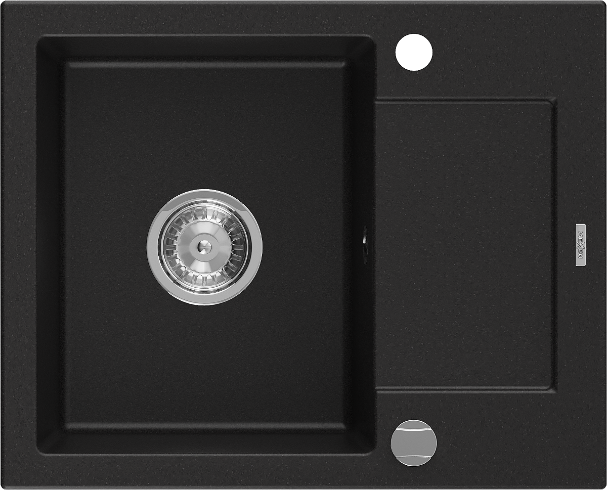 Die Spüle besteht aus hochwertigem Granit. Es ist eine elegante und vor allem praktische Ergänzung zu jeder Küche, unabhängig von ihrem Stil. Hohe Qualität und Granitdauer sorgen für eine langjährige Nutzung.