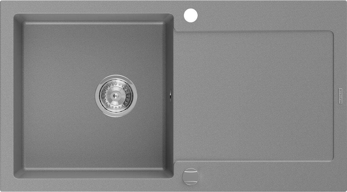 Die Spüle besteht aus hochwertigem Granit. Es ist eine elegante und vor allem praktische Ergänzung zu jeder Küche, unabhängig von ihrem Stil. Hohe Qualität und Granitdauer sorgen für eine langjährige Nutzung.