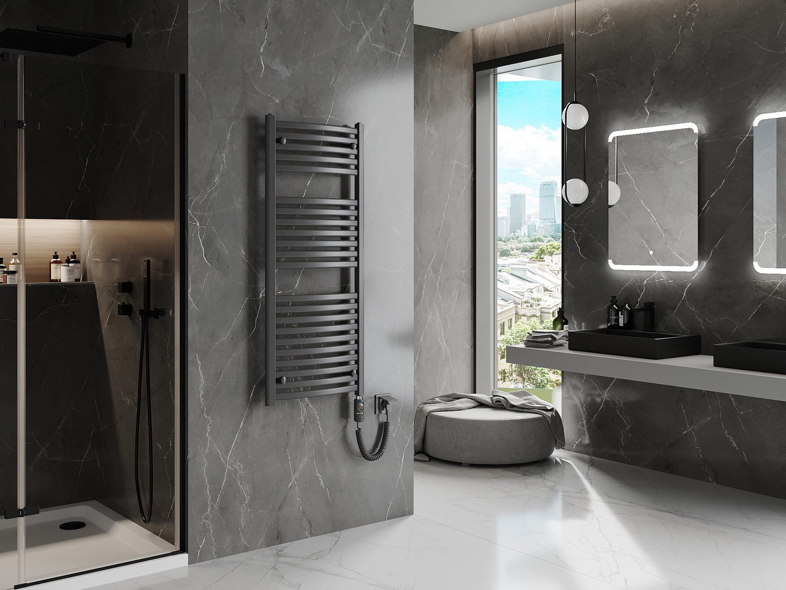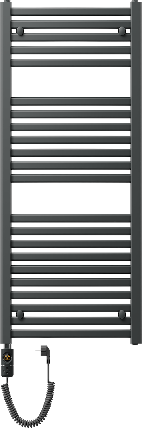 Der Mexen Helios ist ein moderner Elektroheizkörper mit den Maßen 1200 x 500 mm und einer Leistung von 600 W, ideal für Ihr Interieur. Aus langlebigem Stahl gefertigt und mit einer korrosionsbeständigen anthrazitfarbenen Beschichtung versehen, bietet er langanhaltende Nutzung. Die Touchsteuerung über das LED-Display ermöglicht die präzise Einstellung der Temperatur im Bereich von 40°C-65°C sowie die Nutzung der Trocknungsfunktion und der Kindersicherung. Der eingebaute Thermostat und der zusätzliche Schutz gegen Trockenlauf garantieren einen sicheren Betrieb. Dank der Schutzklasse IP44 ist er für unterschiedliche Bedingungen geeignet. Im Set sind Aufhängungen, ein Montageset und Verschlussstopfen enthalten.