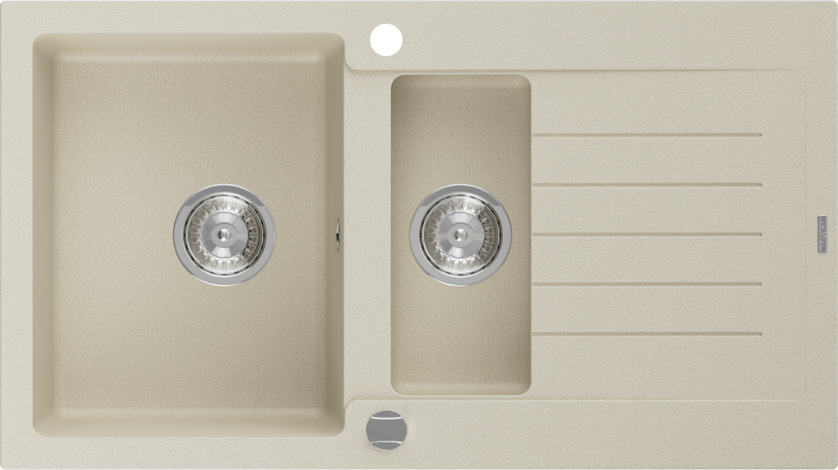 Die Spüle besteht aus hochwertigem Granit. Es ist eine elegante und vor allem praktische Ergänzung zu jeder Küche, unabhängig von ihrem Stil. Hohe Qualität und Granitdauer sorgen für eine langjährige Nutzung.