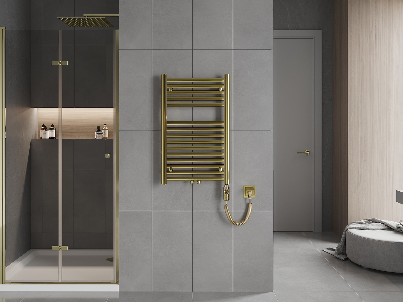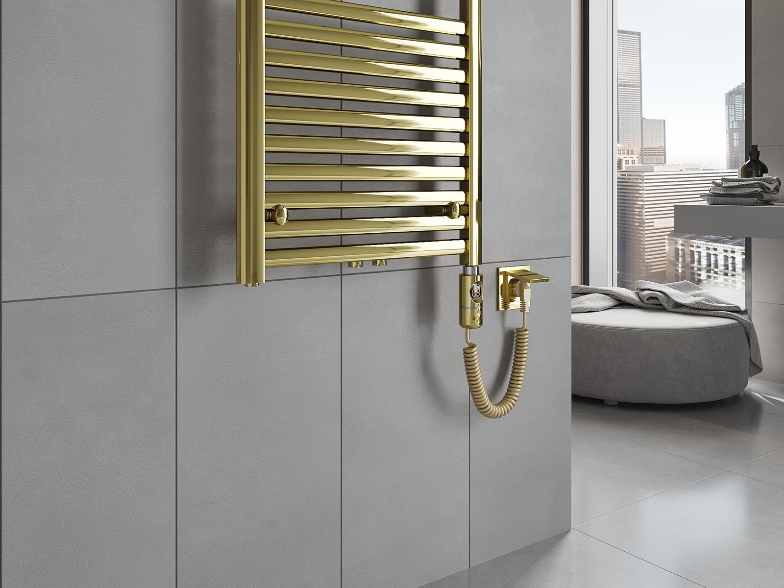Mexen Hades ist ein fortschrittlicher elektrischer Heizkörper mit außergewöhnlichem Design. Die Abmessungen von 800 x 500 mm und die Leistung von 300 W machen ihn ideal für jedes Badezimmer. Die goldene Farbe und die Stahlkonstruktion verleihen Eleganz und sorgen für Langlebigkeit. 15 Heizstäbe und ein eingebauter Thermostat garantieren effizientes Heizen im Bereich von 40°C-65°C. Ausgestattet mit einem LED-Touchpanel, einer Trocknungsfunktion, einer Kindersicherung und einem Schutz vor Trockenlauf bietet Mexen Hades Komfort und Sicherheit in der Nutzung. Das Set enthält Aufhängungen und Montagematerial.