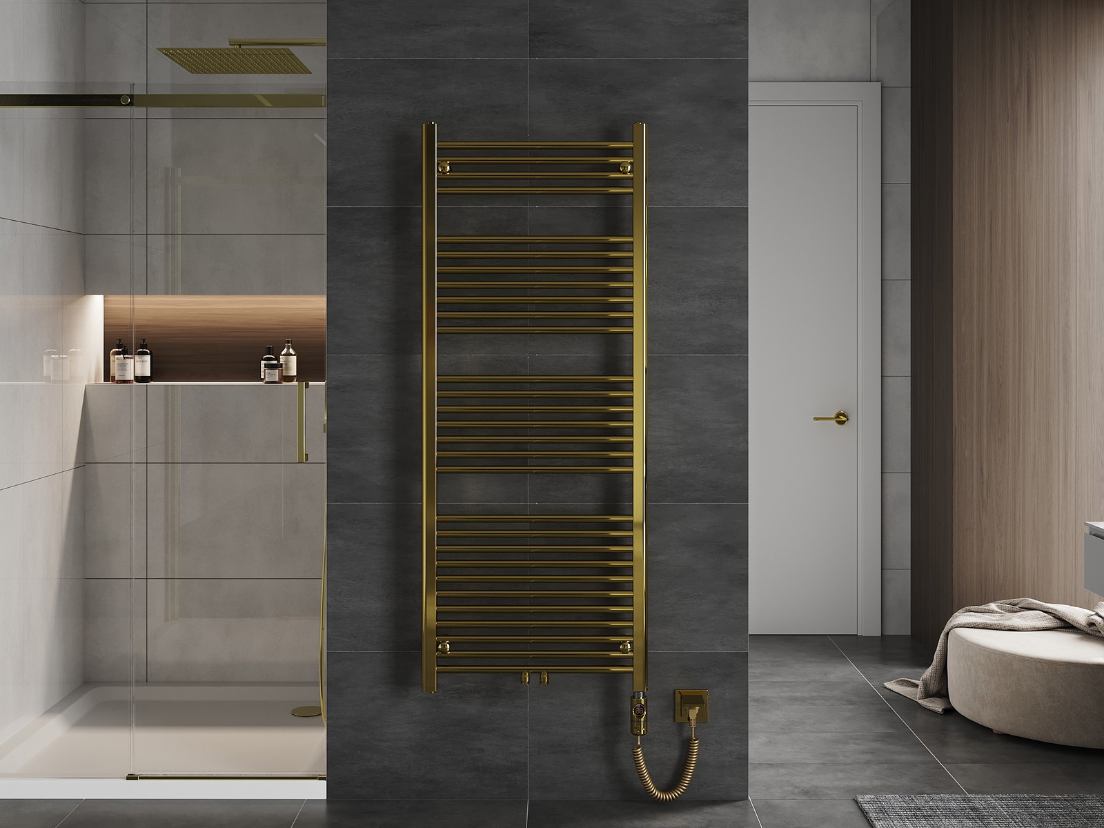 Mexen Mars ist ein eleganter, goldener Elektroheizkörper, der Ästhetik und Funktionalität vereint. Seine Abmessungen von 1500x600 mm und eine Leistung von 600 W machen ihn ideal für moderne Innenräume. Dank der Stahlkonstruktion und korrosionsbeständigen Ausführung garantiert er Langlebigkeit. Der Heizkörper ist mit einer LED-Touch-Steuerung, einem Thermostat sowie Funktionen wie Sensitive und Comfort ausgestattet. Die Sicherheit wird durch den IP44-Schutz und die Kindersicherung gewährleistet. Im Lieferumfang ist ein Montageset enthalten.