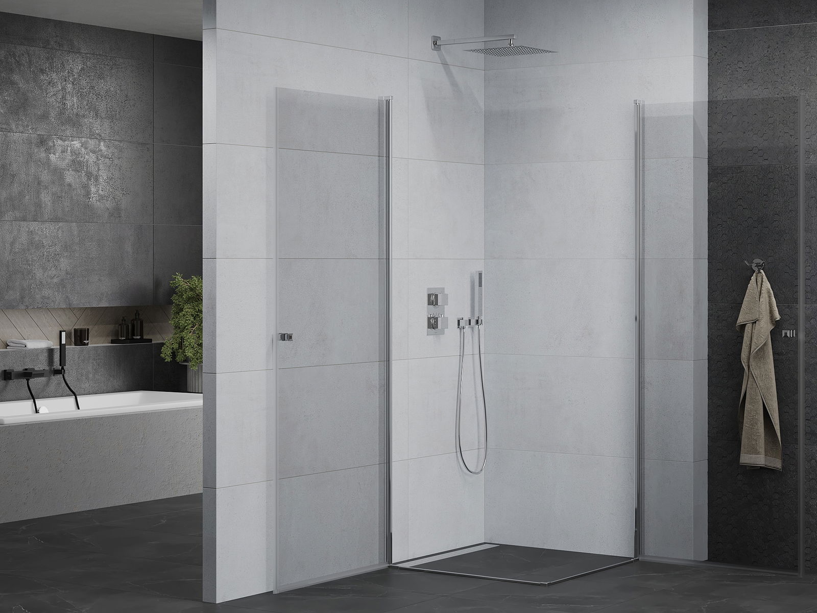 Dank der Verwendung eines universellen Montagesystems können die Duschtüren je nach Ihren Bedürfnissen rechts oder links montiert werden. Dank dessen können Sie problemlos eine Dusche entwerfen, die auf den Raum des Badezimmers zugeschnitten ist.