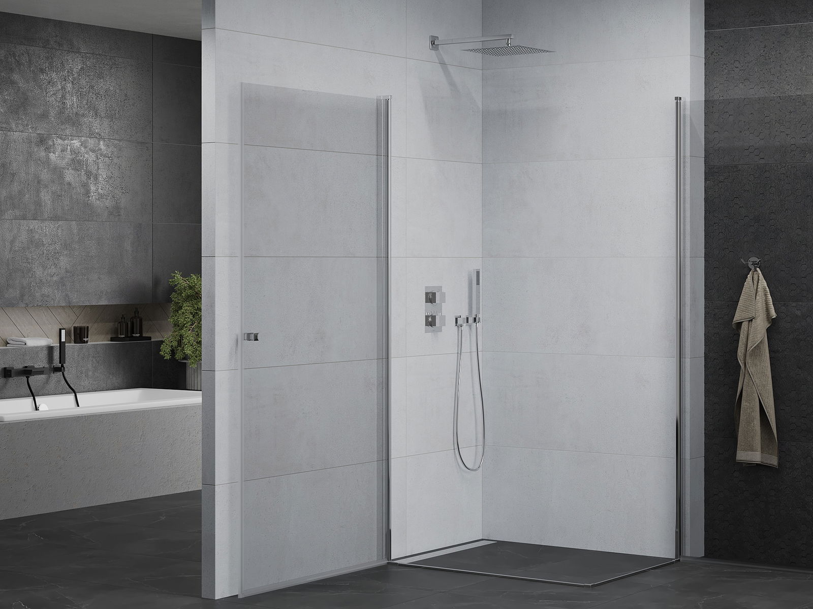 Dank der Verwendung eines universellen Montagesystems können die Duschtüren je nach Ihren Bedürfnissen rechts oder links montiert werden. Dank dessen können Sie problemlos eine Dusche entwerfen, die auf den Raum des Badezimmers zugeschnitten ist.