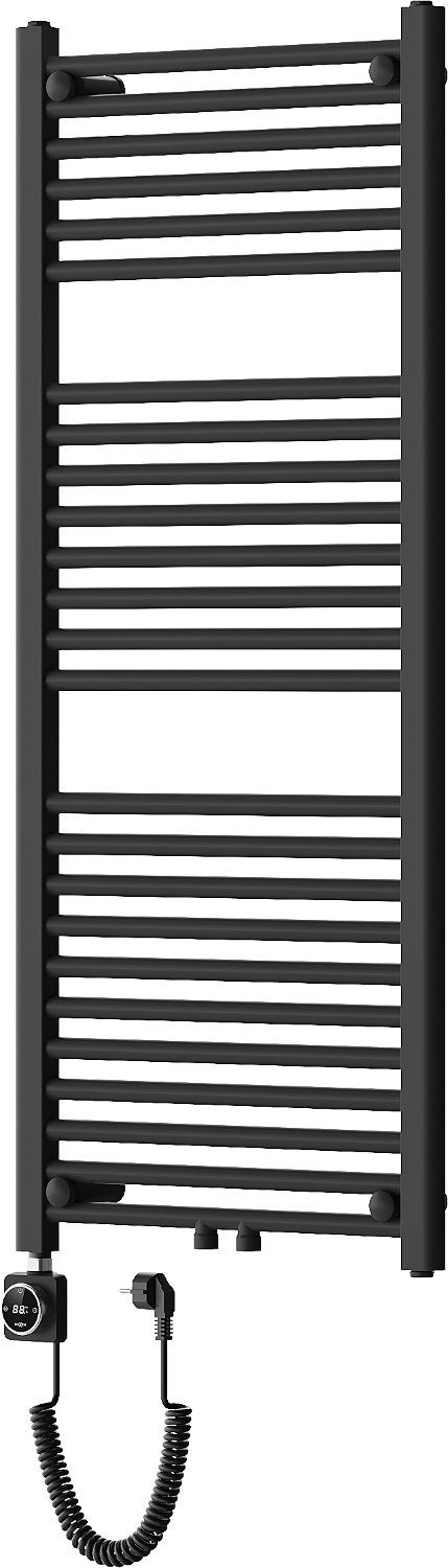 Mexen Mars ist ein moderner elektrischer Heizkörper mit den Maßen 1200 x 500 mm und einer Heizleistung von 500 W, der für effizientes Heizen von Räumen konzipiert wurde. Seine Stahlkonstruktion mit einer Tiefe von nur 30 mm und der schwarze, korrosionsbeständige Lack verbinden Eleganz mit Langlebigkeit. Ausgestattet mit 25 Heizstäben sorgt er für eine schnelle und gleichmäßige Wärmeverteilung. Die Steuerung über einen Drehknopf mit LED-Display ermöglicht präzise Temperatureinstellungen (Sensitive, Comfort, ECO), und der eingebaute Thermostat gewährleistet die Erhaltung der gewünschten Temperatur. Dank zusätzlicher Sicherheitsmerkmale und Trockenoption ist der Mexen Mars nicht nur funktional, sondern auch energieeffizient.
