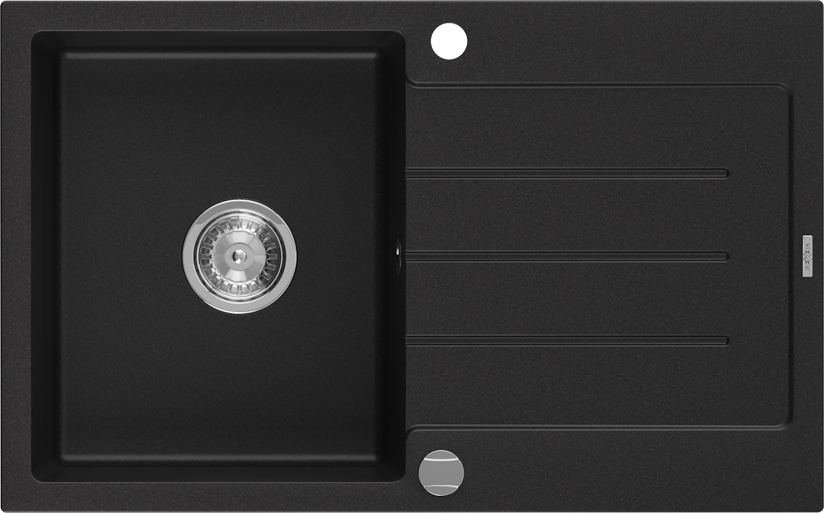 Die Spüle besteht aus hochwertigem Granit. Es ist eine elegante und vor allem praktische Ergänzung zu jeder Küche, unabhängig von ihrem Stil. Hohe Qualität und Granitdauer sorgen für eine langjährige Nutzung.