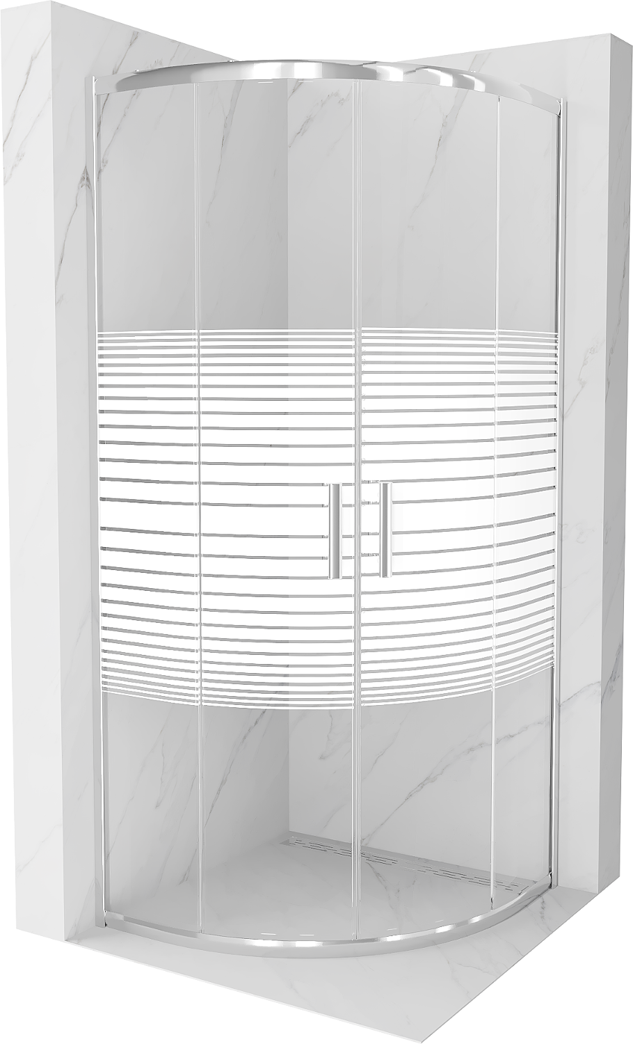 Mexen Rio Duschkabine halbkreisförmig 80 x 80 cm, weiße Streifen, Chrom - 863-080-080-01-20