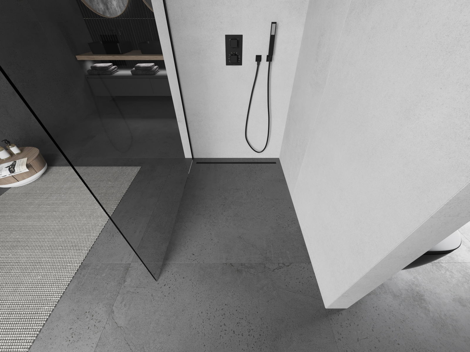 Die begehbare Duschwand ist eine ideale Lösung für Menschen mit Behinderungen. Die offene Kabine bietet einfachen Zugang und beseitigt die Notwendigkeit, Schwellenwerte und Türen zu überwinden. Die Dusche ist komfortabel und freundlich für alle.