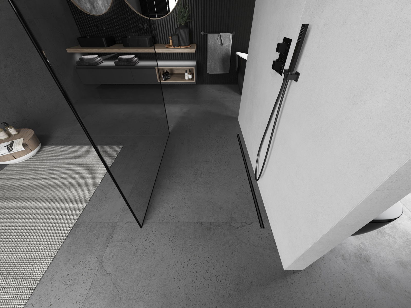 Abhängig von Ihren Bedürfnissen kann das Produkt sowohl auf der Duschschale als auch direkt auf dem Boden montiert werden. Mit der universellen Montagemethode können Sie das Produkt an verschiedene Arten von Badezimmern anpassen und Raum konfigurieren.