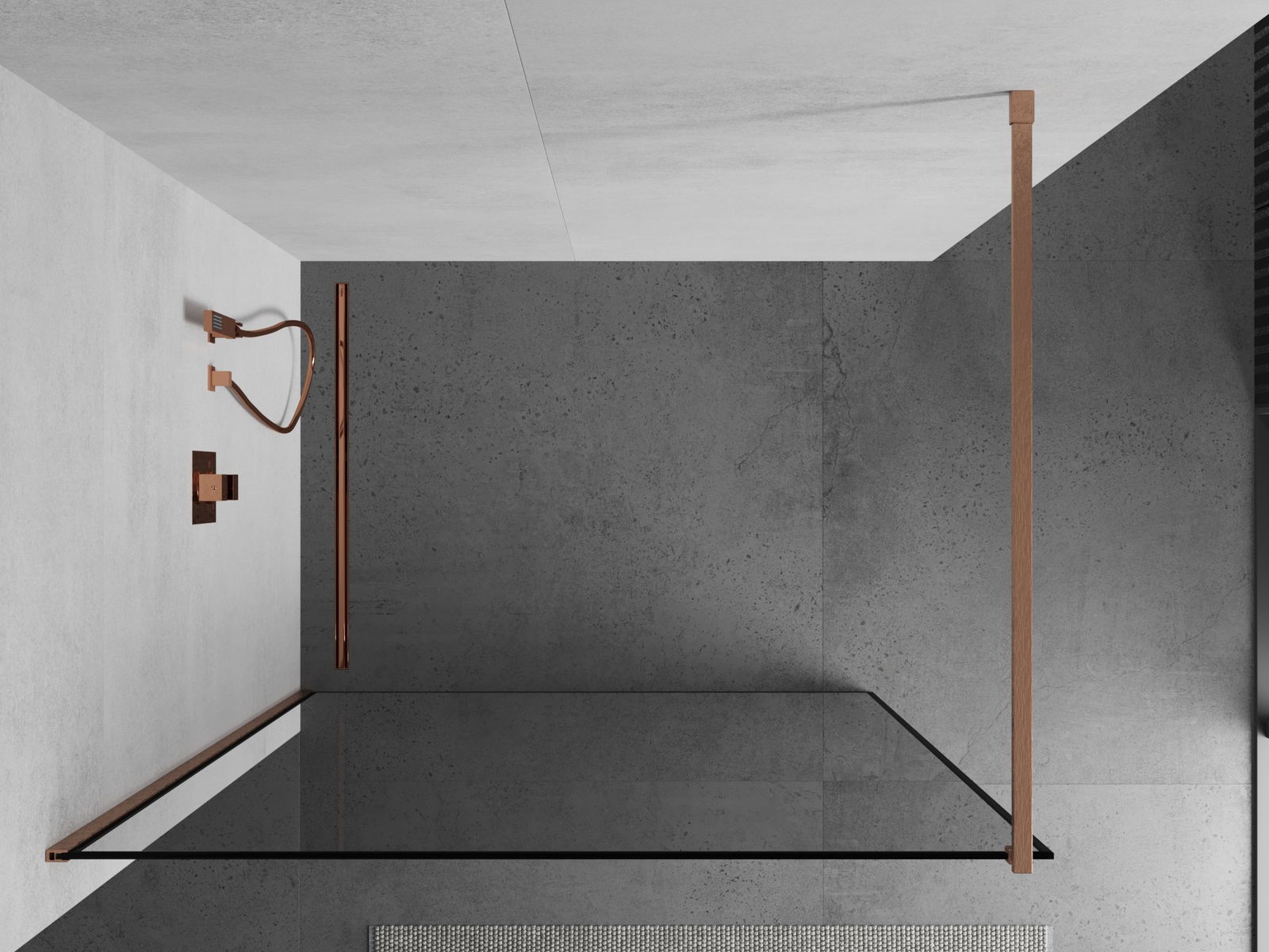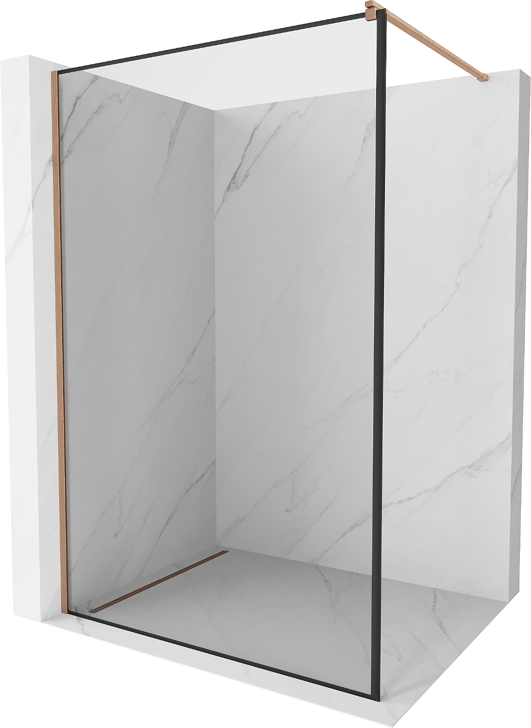 Mexen Kioto Duschwand Walk-in 140 x 200 cm, schwarzer Rahmen 8 mm, gebürstetes Kupfer - 800-140-101-65-70