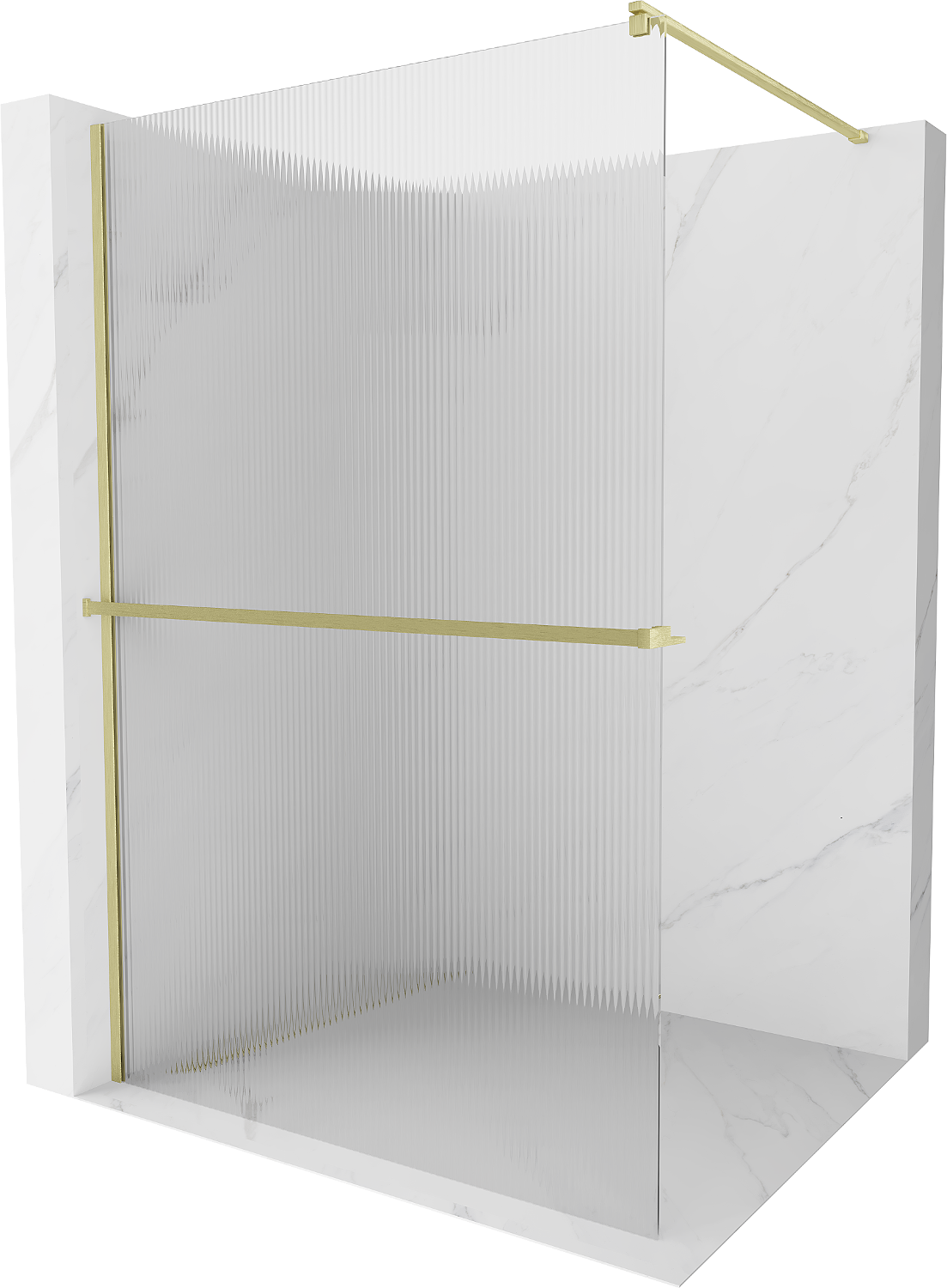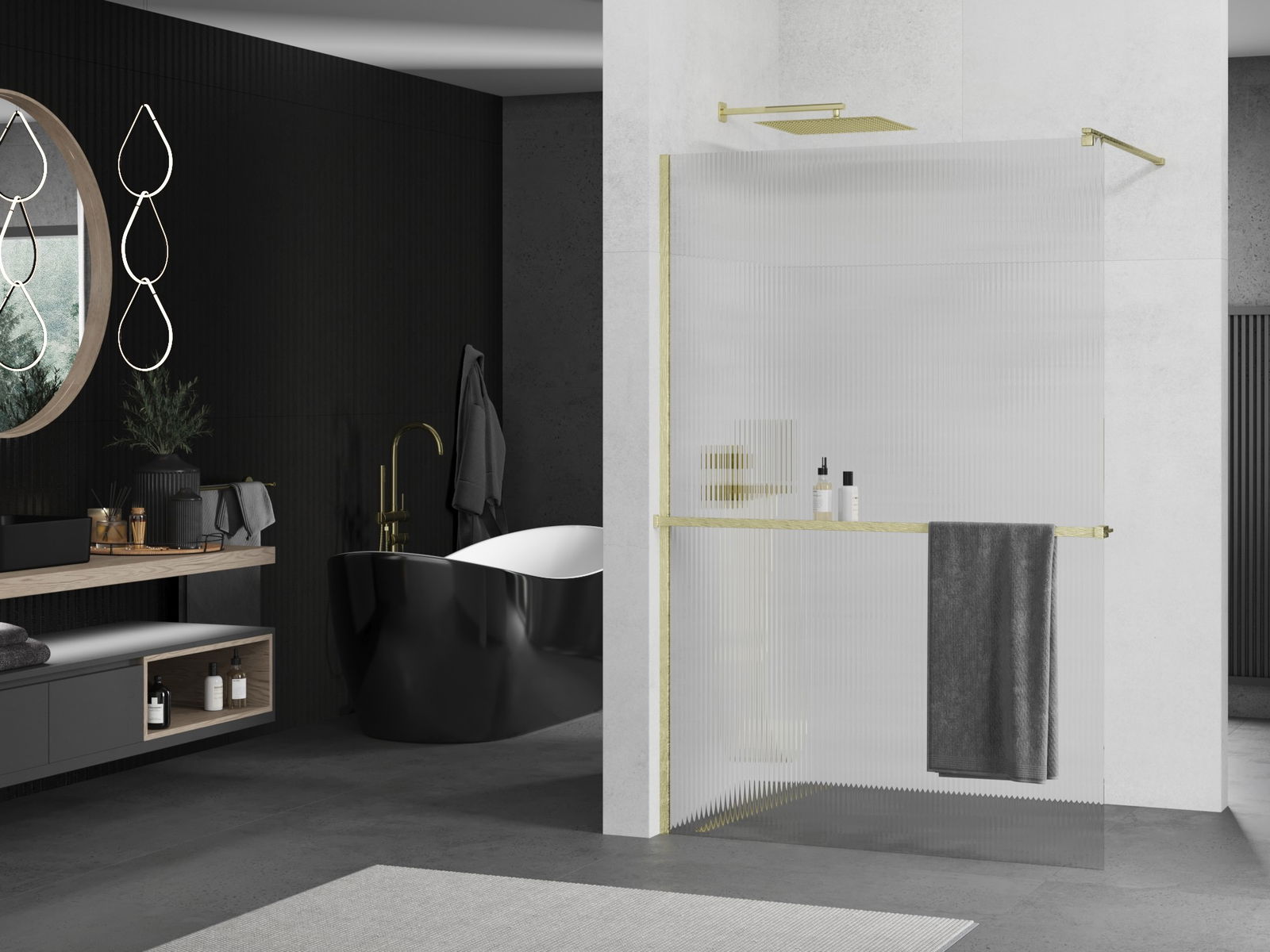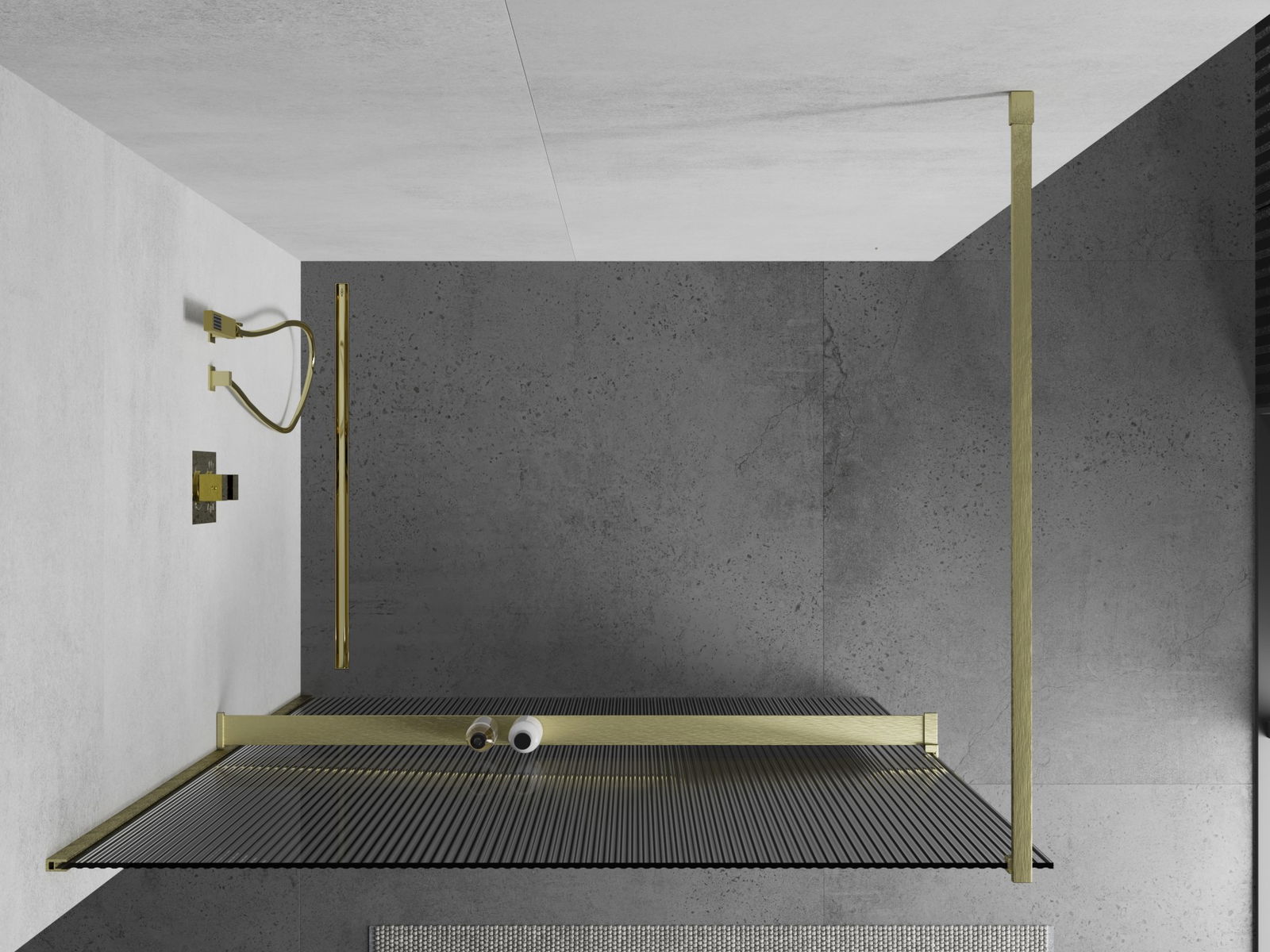 Mexen Kioto+ Duschwand mit Regal Walk-in 110 x 200 cm, Streifen, gold gebürstet - 800-110-121-55-09