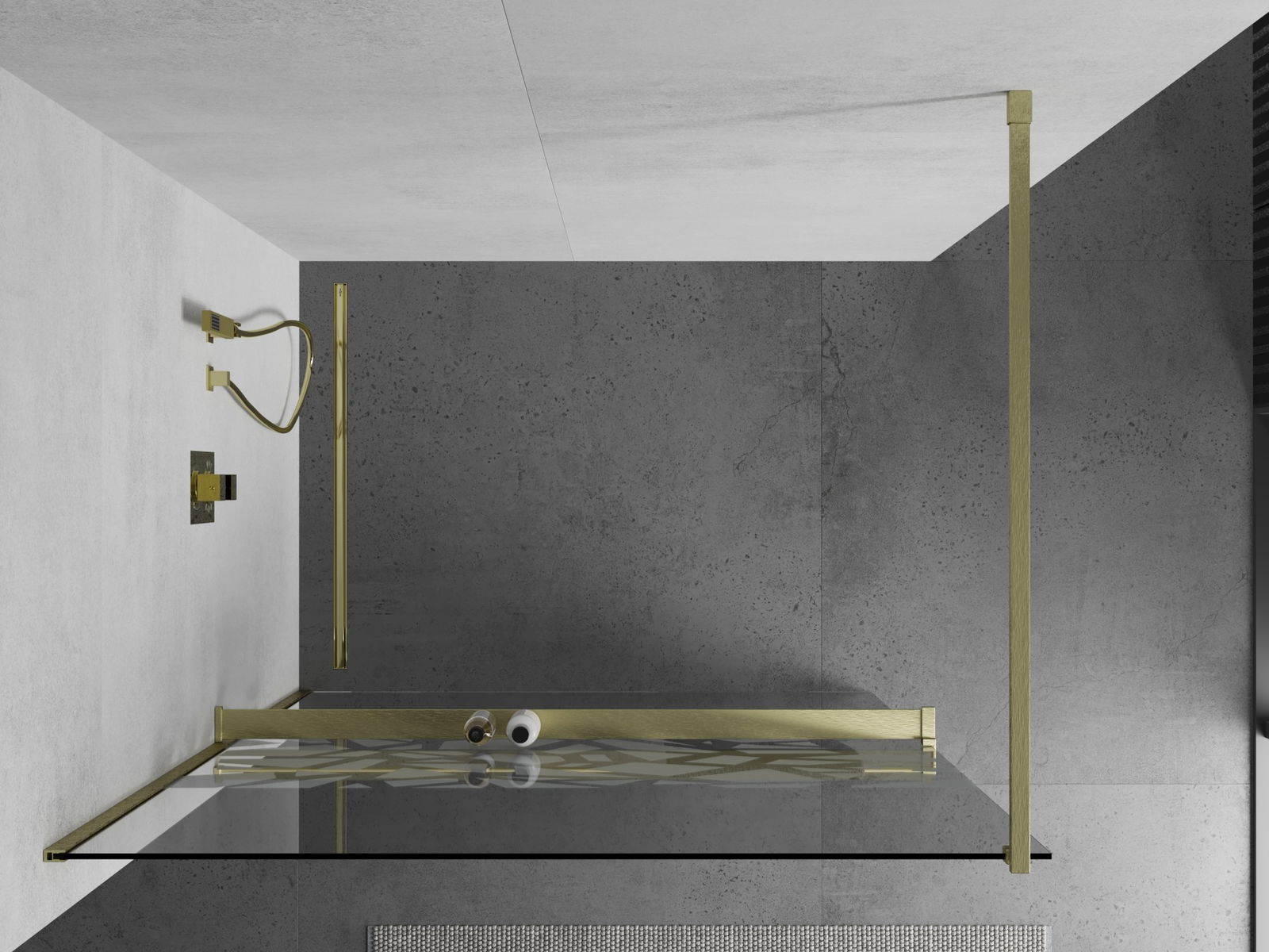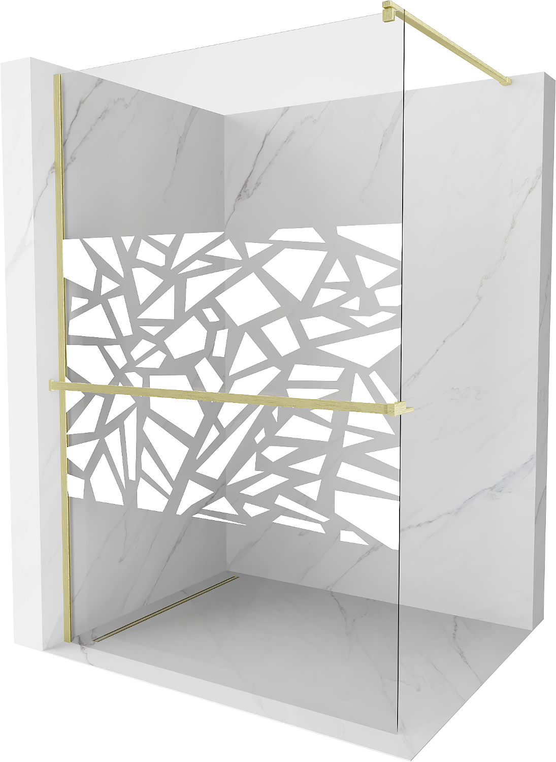 Mexen Kioto+ Duschwand mit Regal Walk-in 140 x 200 cm, weißes Muster, gebürstetes Gold - 800-140-121-55-85