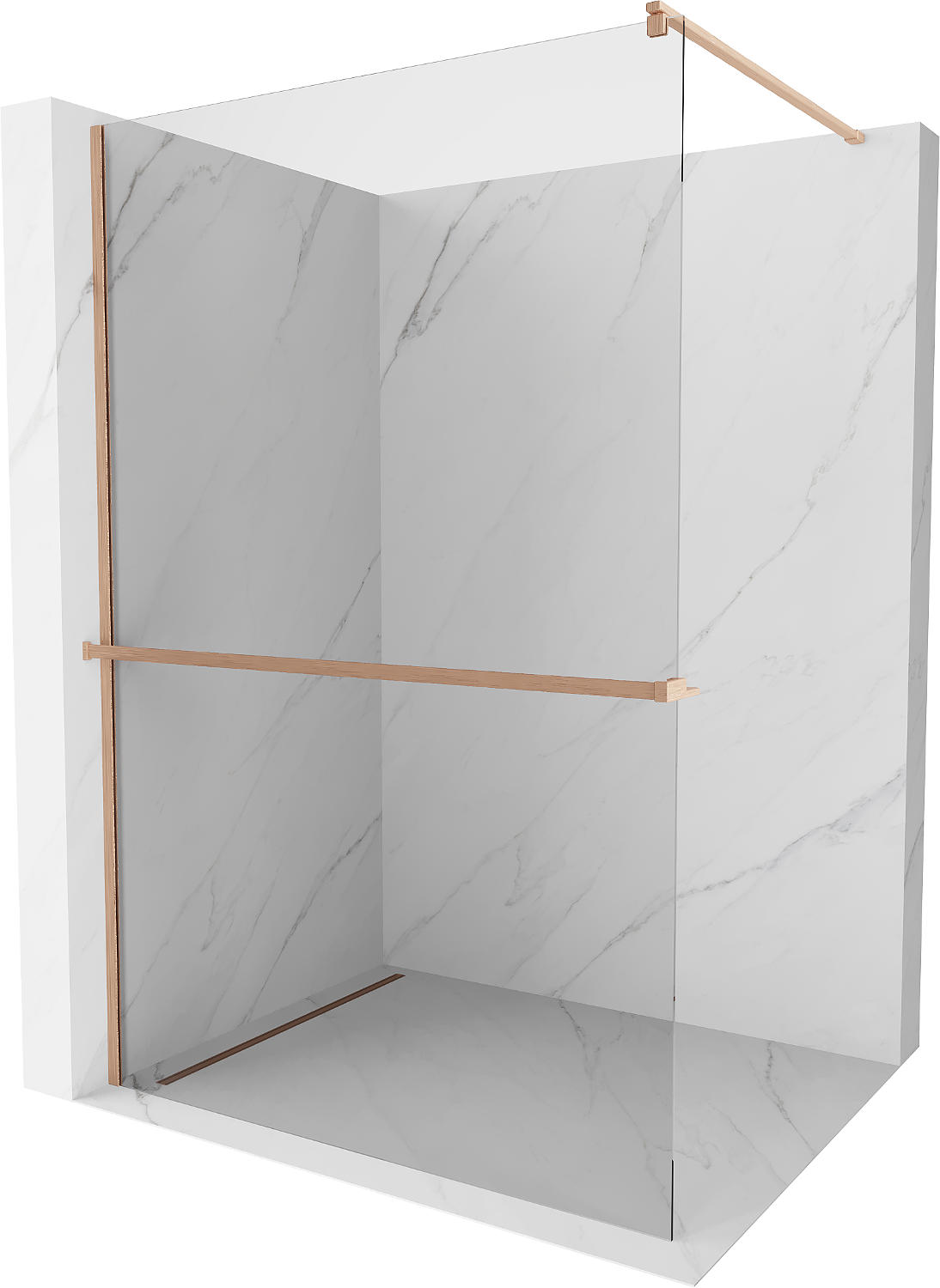 Mexen Kioto+ Duschwand mit Ablage Walk-in 125 x 200 cm, transparent, gebürstetes Kupfer - 800-125-121-65-00