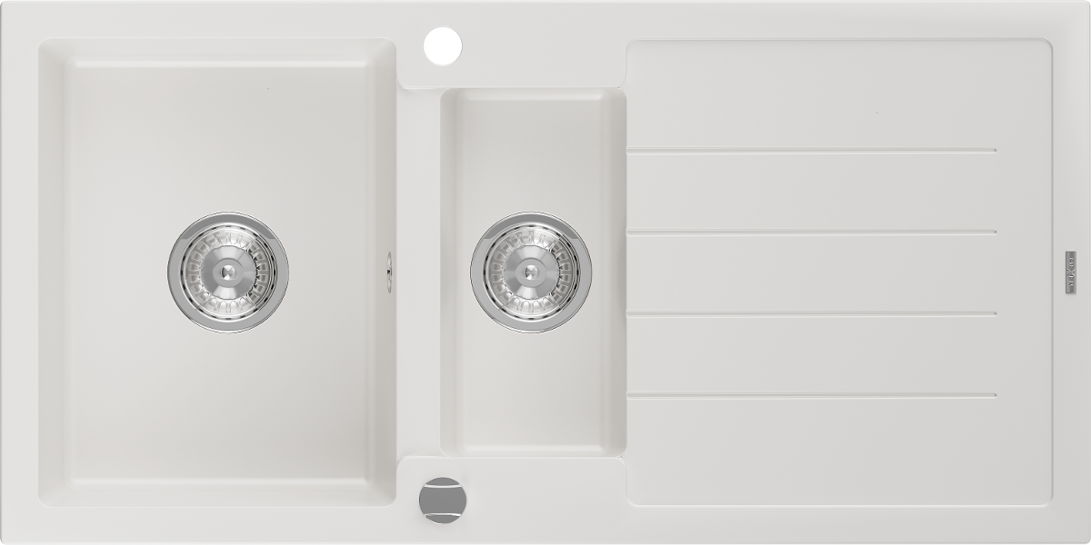Dank des universellen Montagesystems ist die Spüle reversibel und der Abfluss kann links oder rechts auf der Theke montiert werden. Auf diese Weise können Sie die Seite einfach an Ihre Bedürfnisse und Bedingungen einstellen.