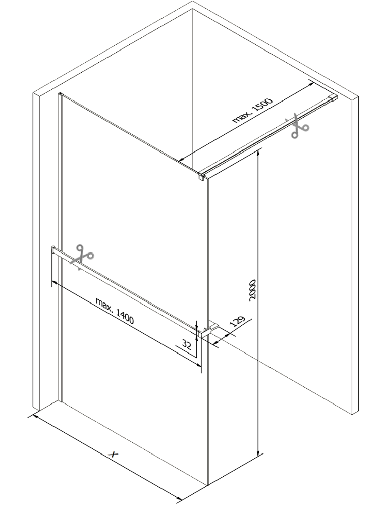 Mexen Kioto+ Duschwand mit Ablage Walk-in 140 x 200 cm, weiße Welle, gebürstet gun gray - 800-140-121-66-97