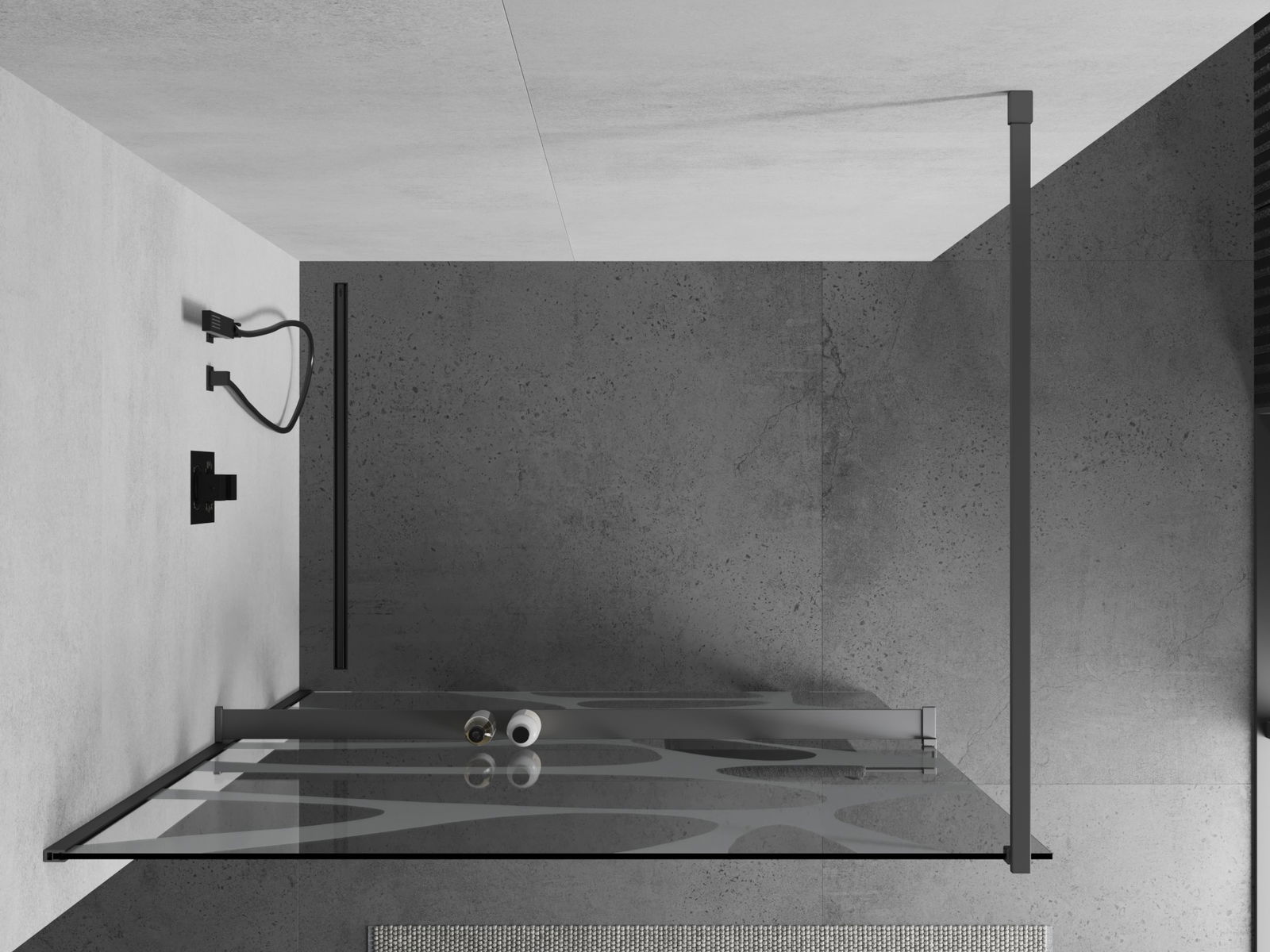 Mexen Kioto+ Duschwand mit Regal Walk-in 140 x 200 cm, weiße Welle, Gun Metal - 800-140-121-95-97