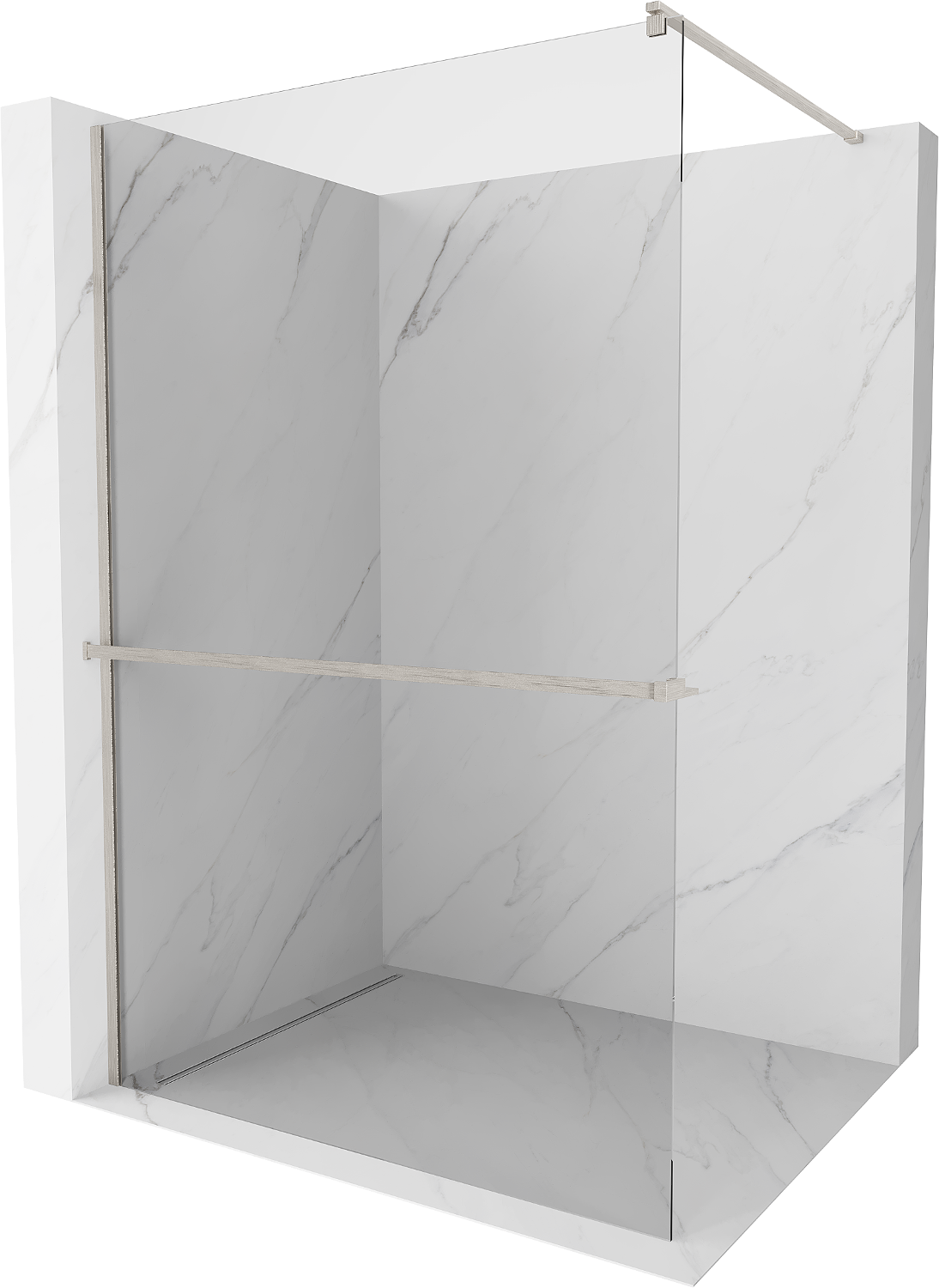 Mexen Kioto+ Duschwand mit Ablage Walk-in 135 x 200 cm, transparent, gebürstetes Nickel - 800-135-121-97-00