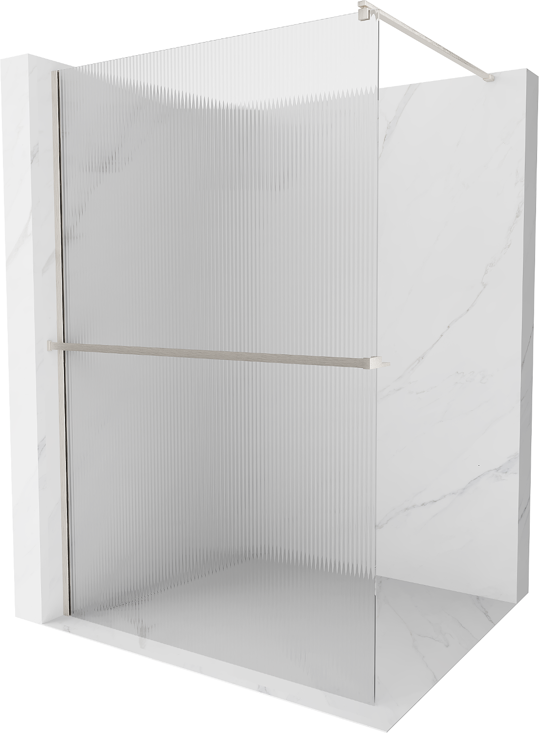 Die begehbare Duschwand ist eine ideale Lösung für Menschen mit Behinderungen. Die offene Kabine bietet einfachen Zugang und beseitigt die Notwendigkeit, Schwellenwerte und Türen zu überwinden. Die Dusche ist komfortabel und freundlich für alle.