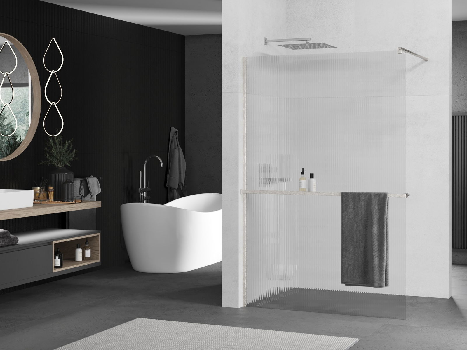 Der Handtuchgriff in der Duschwand ist eine sehr praktische und bequeme Lösung. Während des Badens steht das Handtuch immer an Ihren Fingerspitzen und erleichtert den freien Gebrauch. Es ist auch ein idealer Ort, um das Handtuch zu trocknen.