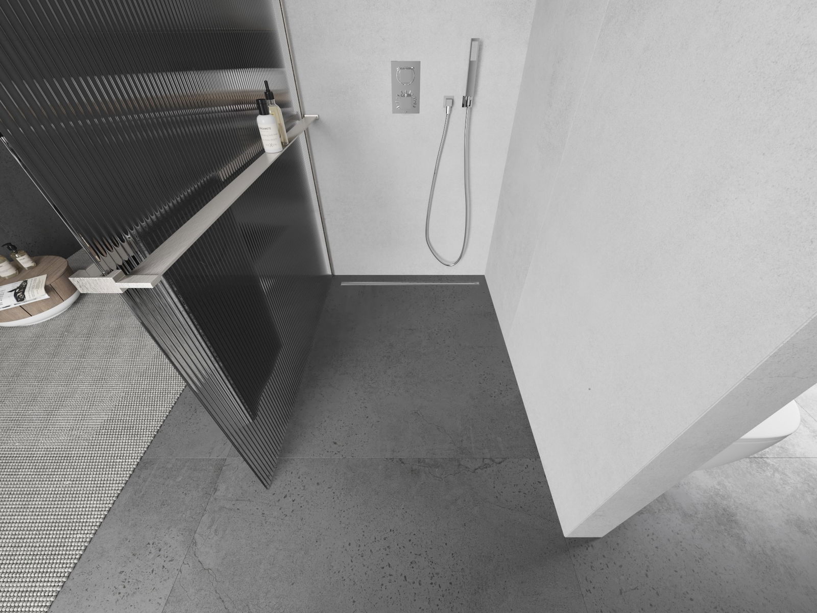 Die begehbare Duschwand ist eine ideale Lösung für Menschen mit Behinderungen. Die offene Kabine bietet einfachen Zugang und beseitigt die Notwendigkeit, Schwellenwerte und Türen zu überwinden. Die Dusche ist komfortabel und freundlich für alle.