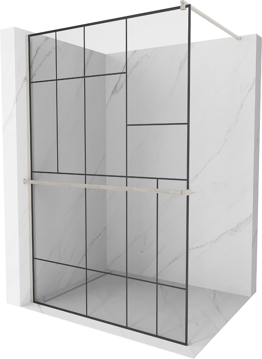 Mexen Kioto+ Duschwand mit Ablage Walk-in 120 x 200 cm, schwarzes Muster, gebürstetes Nickel - 800-120-121-97-78