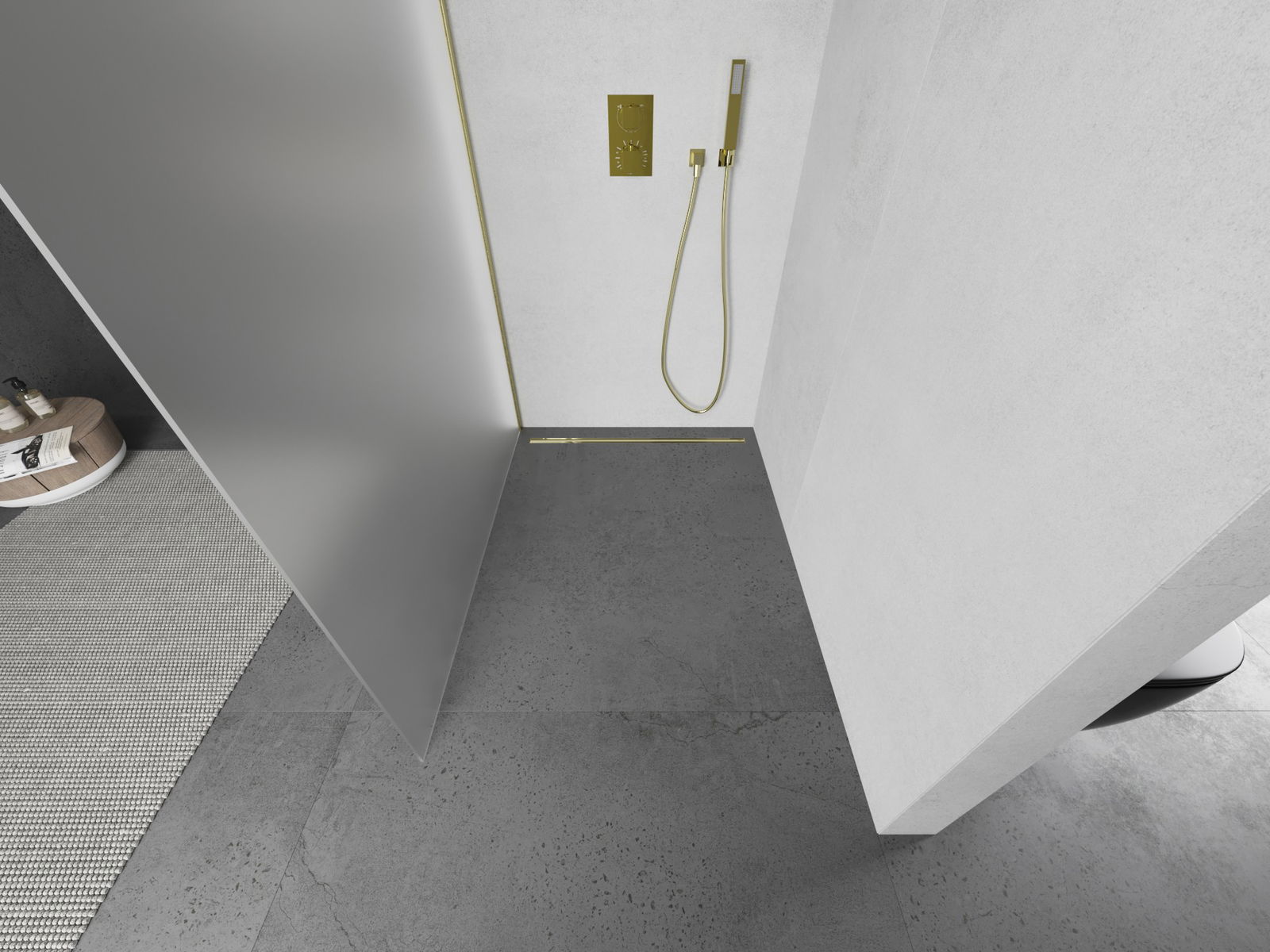 Mexen Kioto Duschwand Walk-in 80 x 200 cm, Mattglas 8 mm, gebürstetes Gold - 800-080-101-55-30