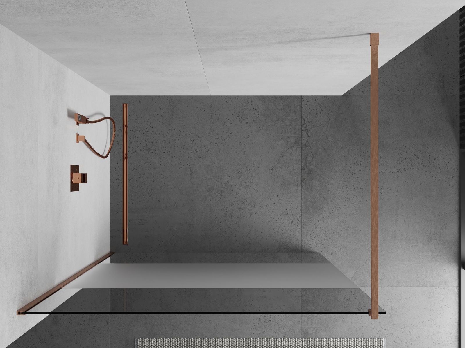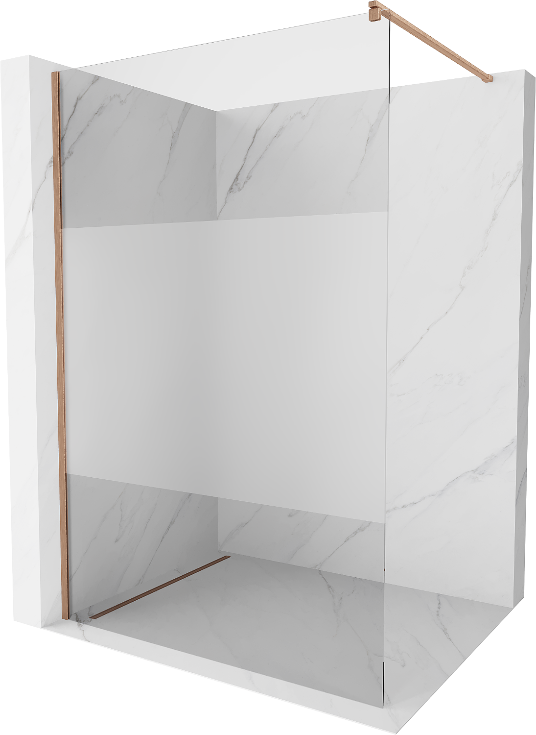 Mexen Kioto Duschwand Walk-in 100 x 200 cm, transparent/frostig 8 mm, gebürstetes Kupfer - 800-100-101-65-35