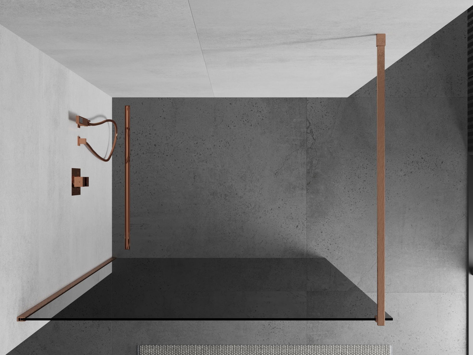 Mexen Kioto Duschwand Walk-in 100 x 200 cm, graphit 8 mm, gebürstetes Kupfer - 800-100-101-65-40