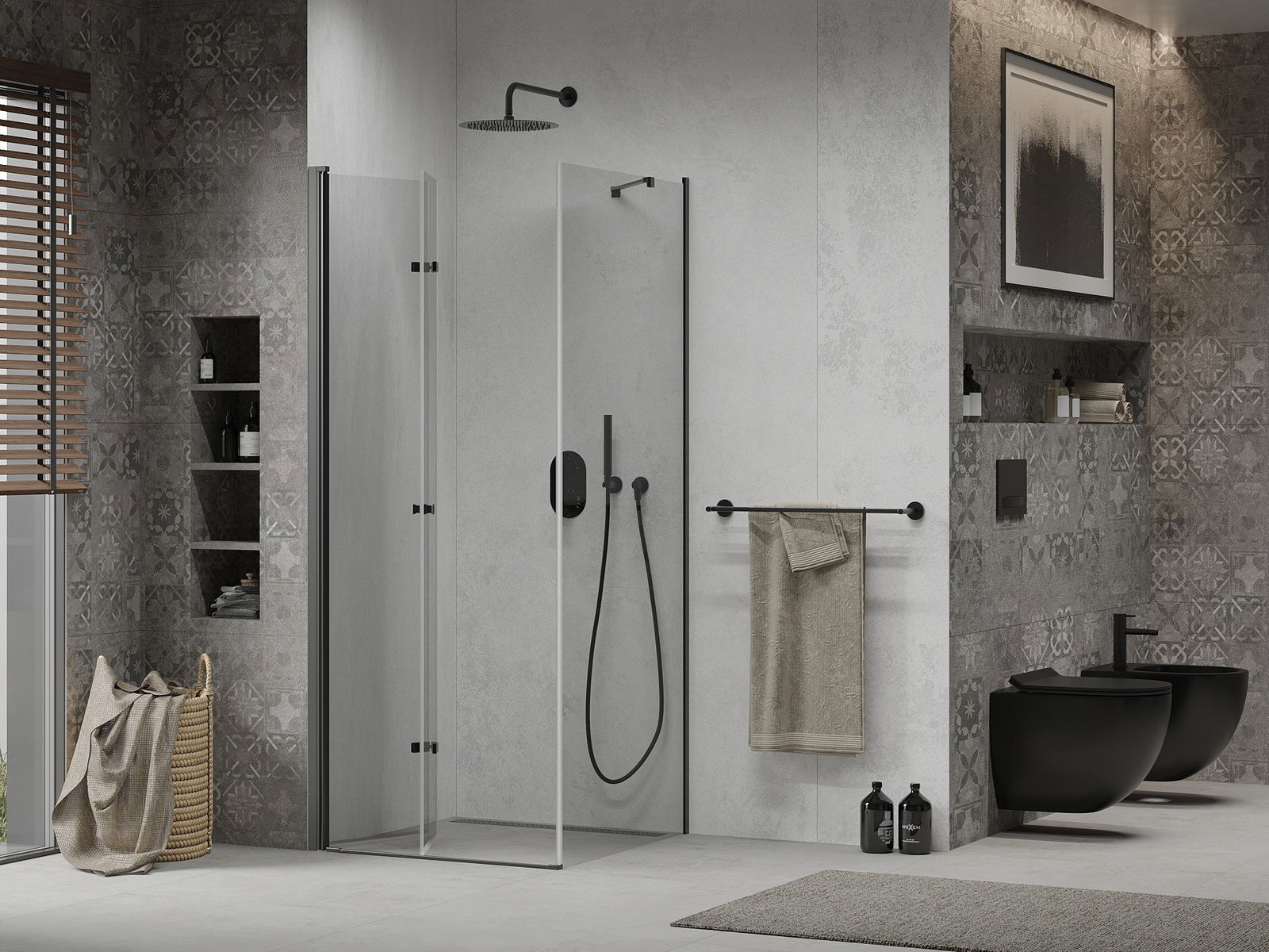 Der praktische und bequeme Griff bestand aus langlebigem und widerstandsfähigem Metall. Die modische Form in Kombination mit einem auf die Farbe der Profile zugeschnittenen Finish verleiht dem Ganzen einen modernen und stilvollen Look und betont die Ästhetik jedes Badezimmers.