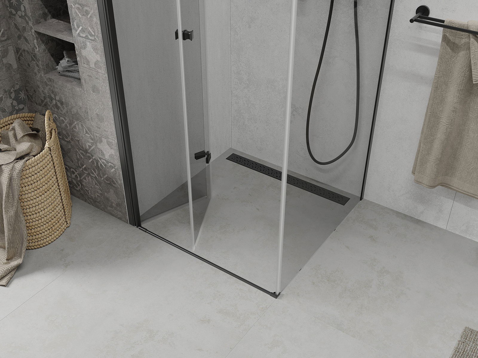 Durch die Möglichkeit, die Tür sowohl außerhalb als auch innen zu falten, können Sie mehr Platz erhalten, wenn Sie die Dusche nicht verwenden. Es ist eine ideale Lösung für kleinere Badezimmer, maximal mit der verfügbaren Oberfläche.