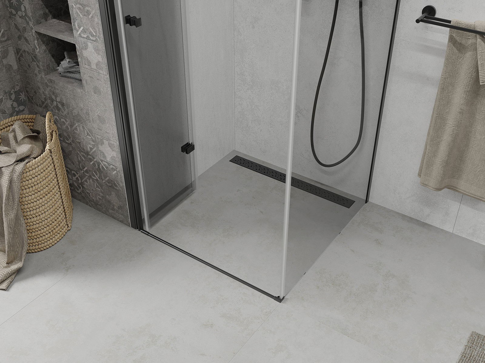 Abhängig von Ihren Bedürfnissen kann das Produkt sowohl auf der Duschschale als auch direkt auf dem Boden montiert werden. Mit der universellen Montagemethode können Sie das Produkt an verschiedene Arten von Badezimmern anpassen und Raum konfigurieren.