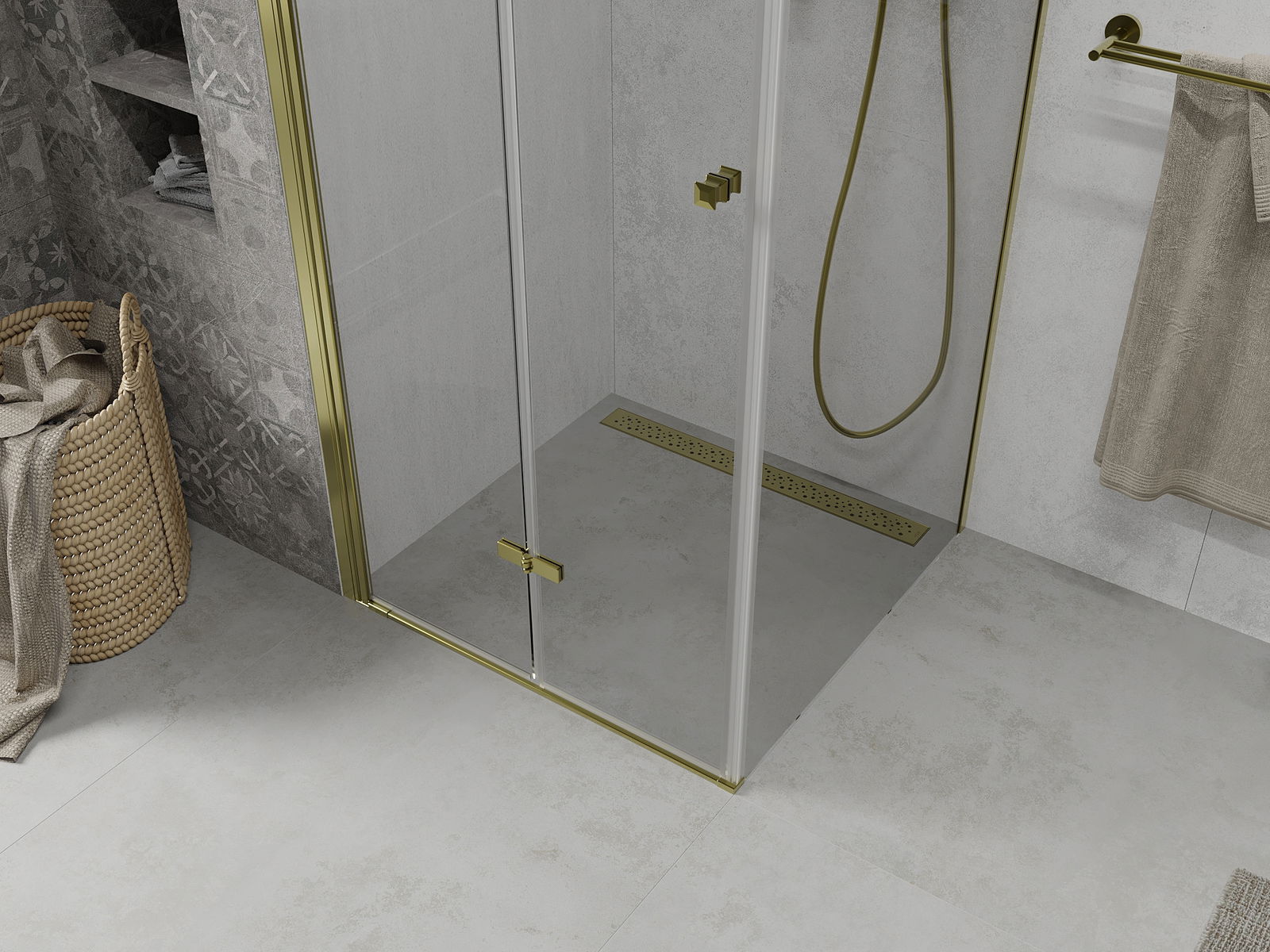 Durch die Möglichkeit, die Tür sowohl außerhalb als auch innen zu falten, können Sie mehr Platz erhalten, wenn Sie die Dusche nicht verwenden. Es ist eine ideale Lösung für kleinere Badezimmer, maximal mit der verfügbaren Oberfläche.