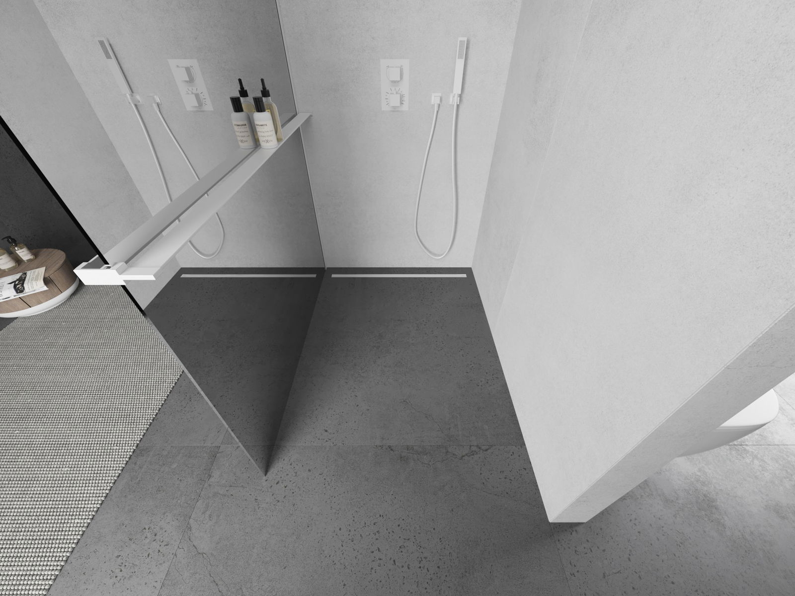 Die begehbare Duschwand ist eine ideale Lösung für Menschen mit Behinderungen. Die offene Kabine bietet einfachen Zugang und beseitigt die Notwendigkeit, Schwellenwerte und Türen zu überwinden. Die Dusche ist komfortabel und freundlich für alle.
