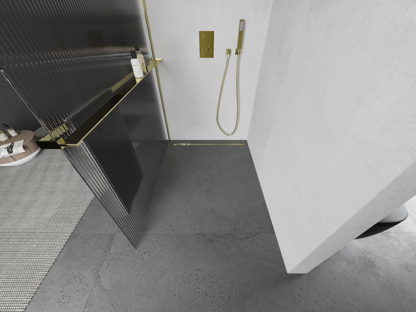 Mexen Kioto+ L Duschwand mit Ablage Walk-in 70 x 200 cm, klar, gold - 800-070-123-50-09