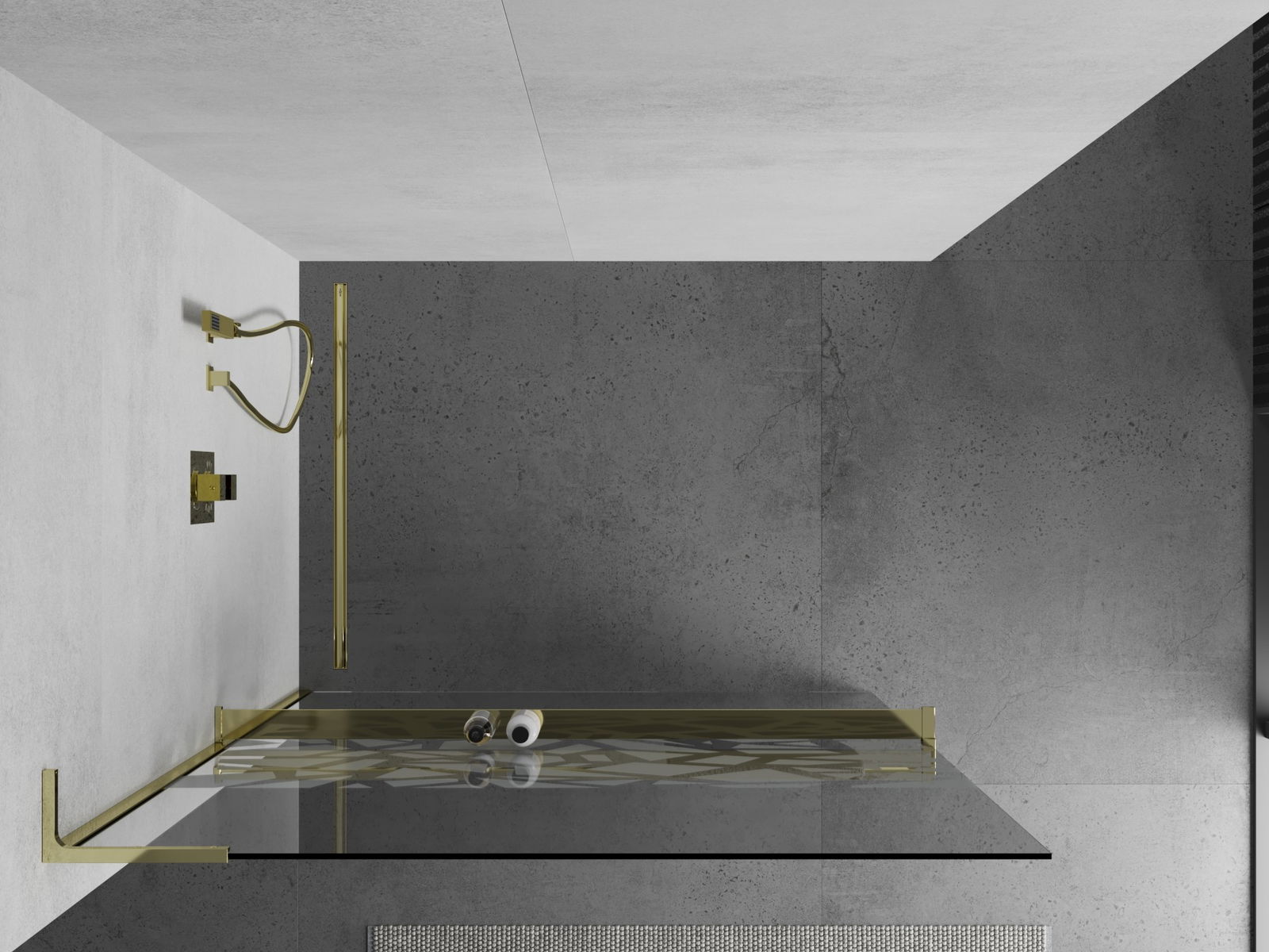 Mexen Kioto+ L Duschwand mit Regal Walk-in 70 x 200 cm, weißes Muster, gold - 800-070-123-50-85